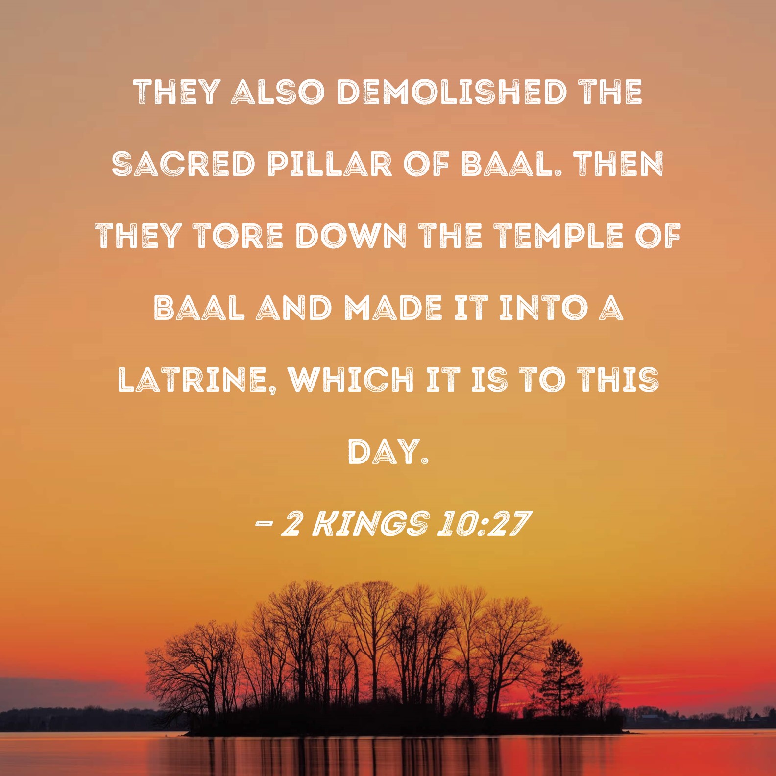 2 Kings 10:27 They also demolished the sacred pillar of Baal. Then they tore down the temple of Baal and made it into a latrine, which it is to this day.