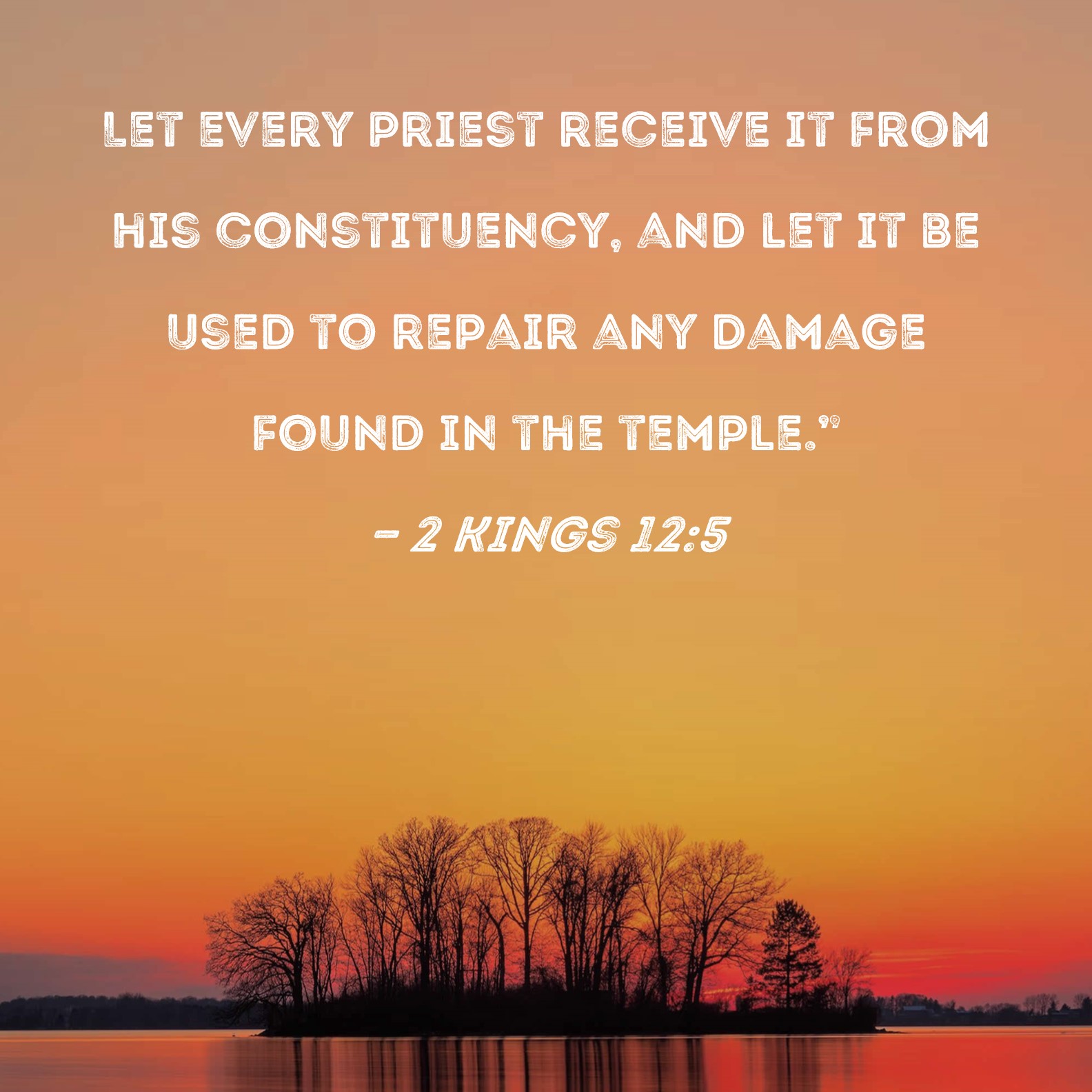 2 Kings 12:5 Let every priest receive it from his constituency, and let it be used to repair any damage found in the temple."