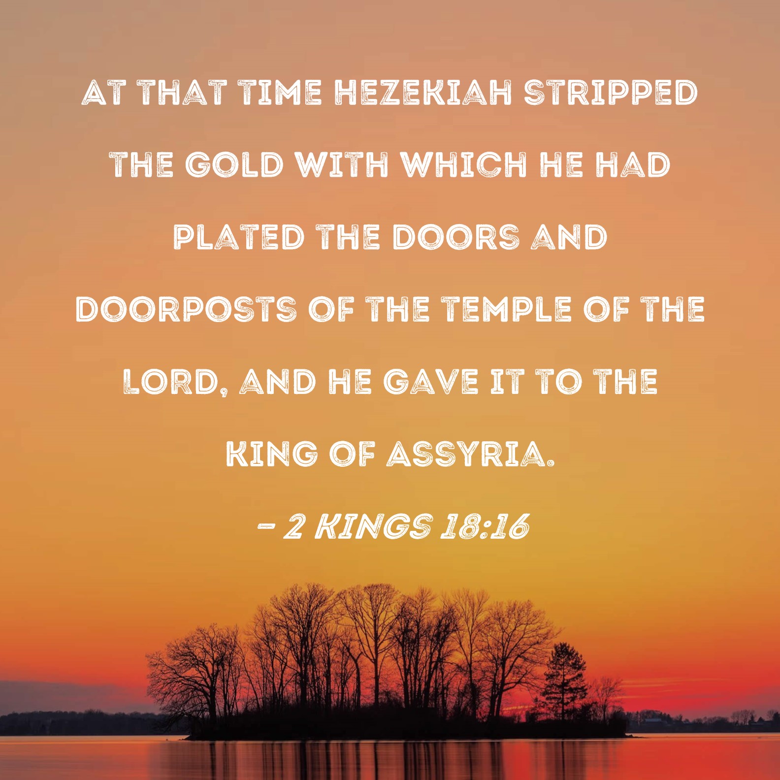 2 Kings 18:16 At that time Hezekiah stripped the gold with which he had plated the doors and doorposts of the temple of the LORD, and he gave it to the king of Assyria.