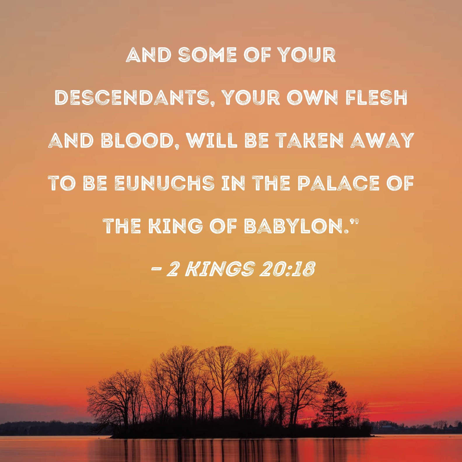 2 Kings 20:18 And some of your descendants, your own flesh and blood, will be taken away to be eunuchs in the palace of the king of Babylon."