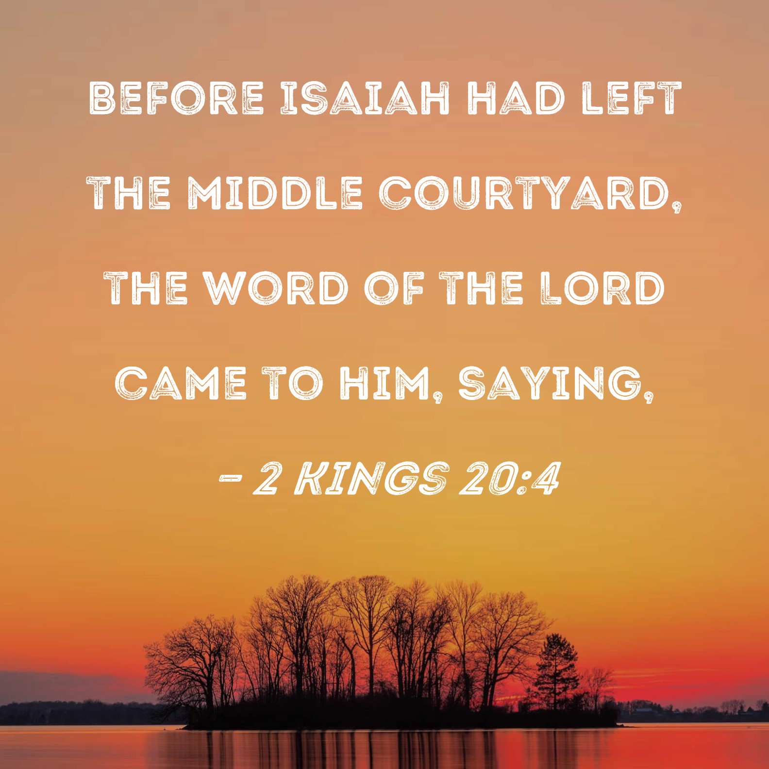2 Kings 20:4 Before Isaiah had left the middle courtyard, the word of the LORD came to him, saying,