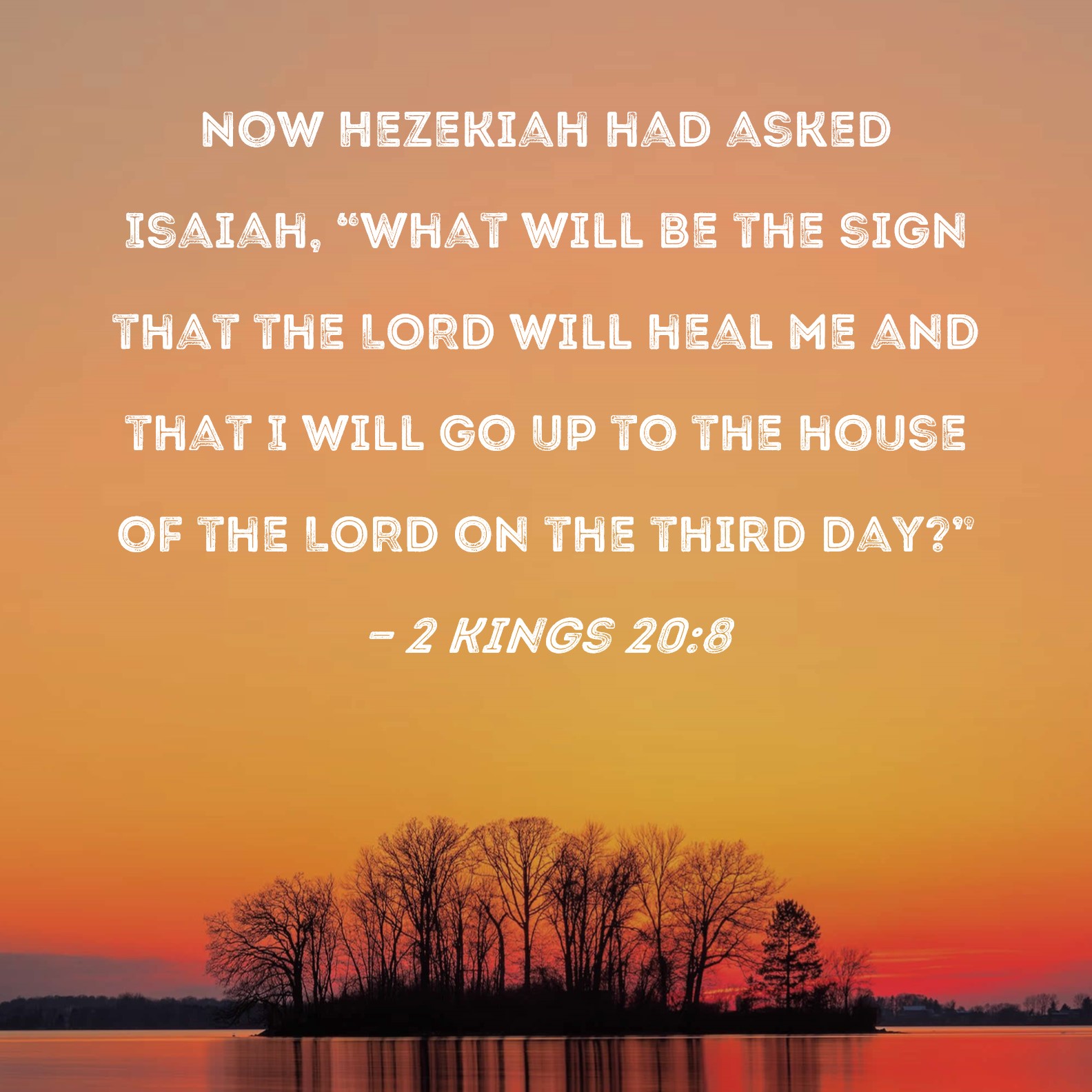 2 Kings 20:8 Now Hezekiah had asked Isaiah, "What will be the sign that the LORD will heal me and that I will go up to the house of the LORD on the third day?"