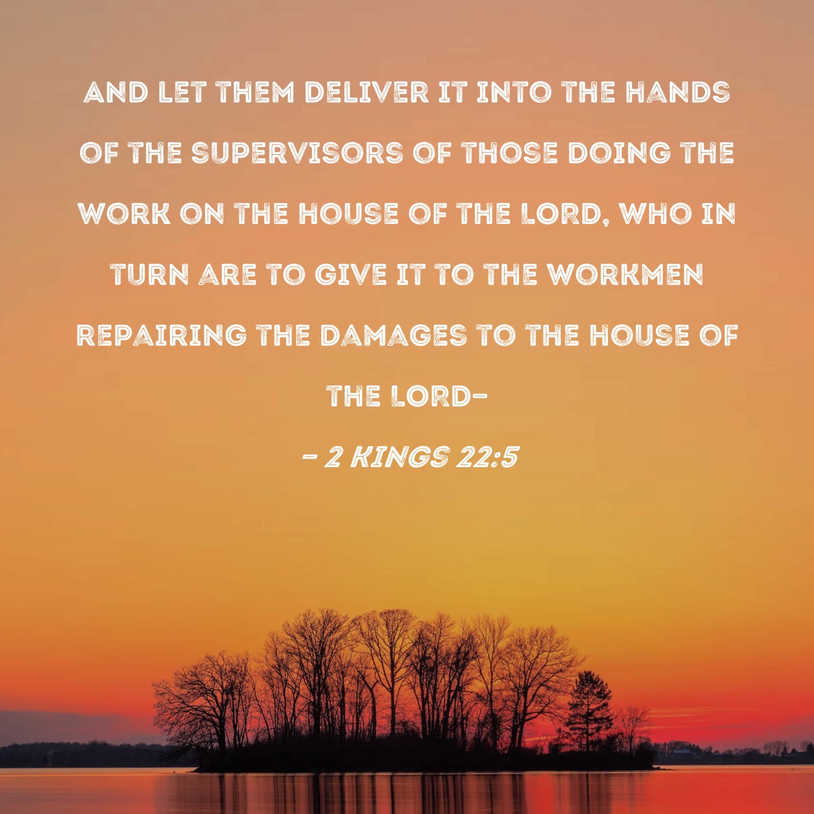 2 Kings 22:5 And let them deliver it into the hands of the supervisors of those doing the work on the house of the LORD, who in turn are to give it to the workmen repairing the damages to the house of the LORD--