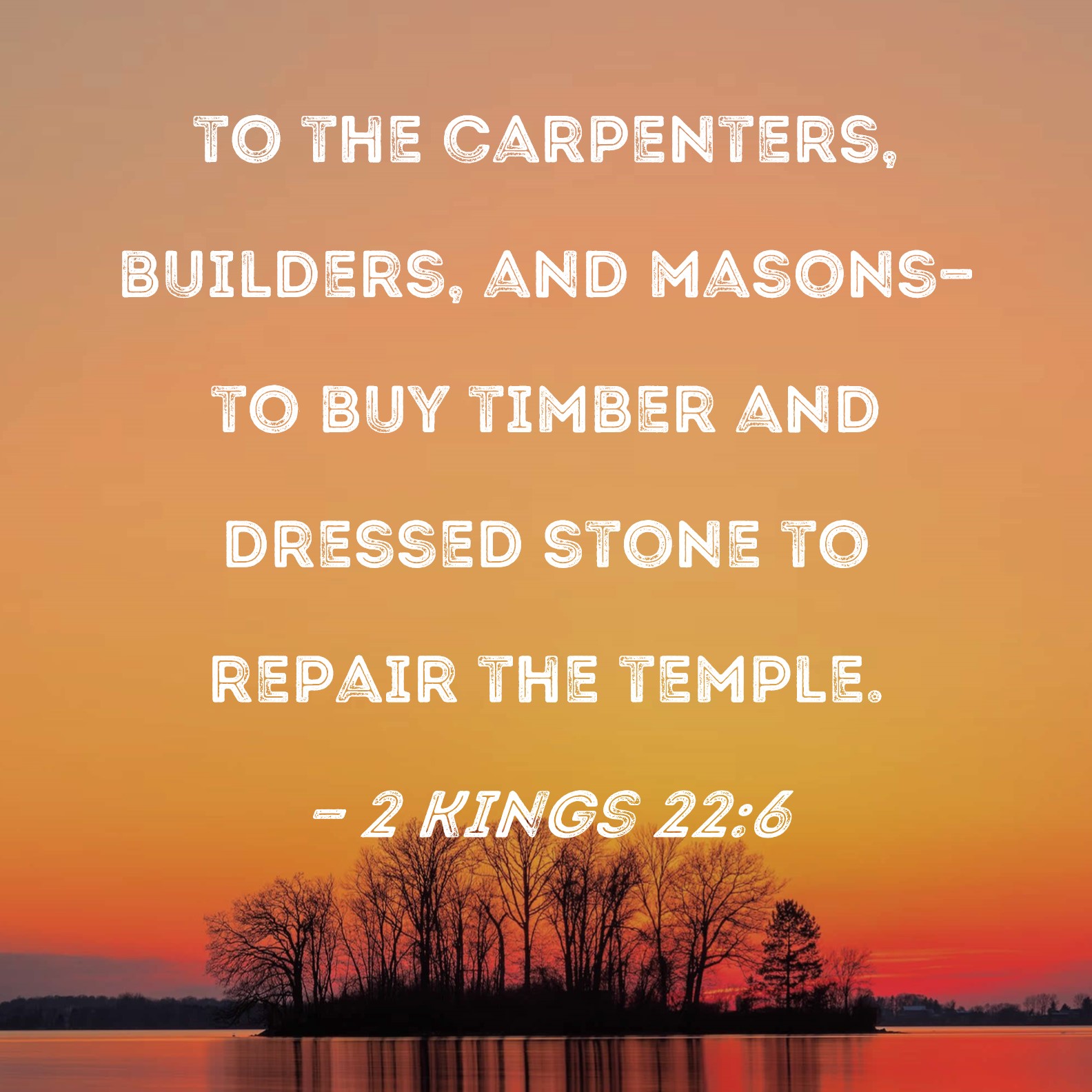 2 Kings 22:6 to the carpenters, builders, and masons--to buy timber and dressed stone to repair the temple.