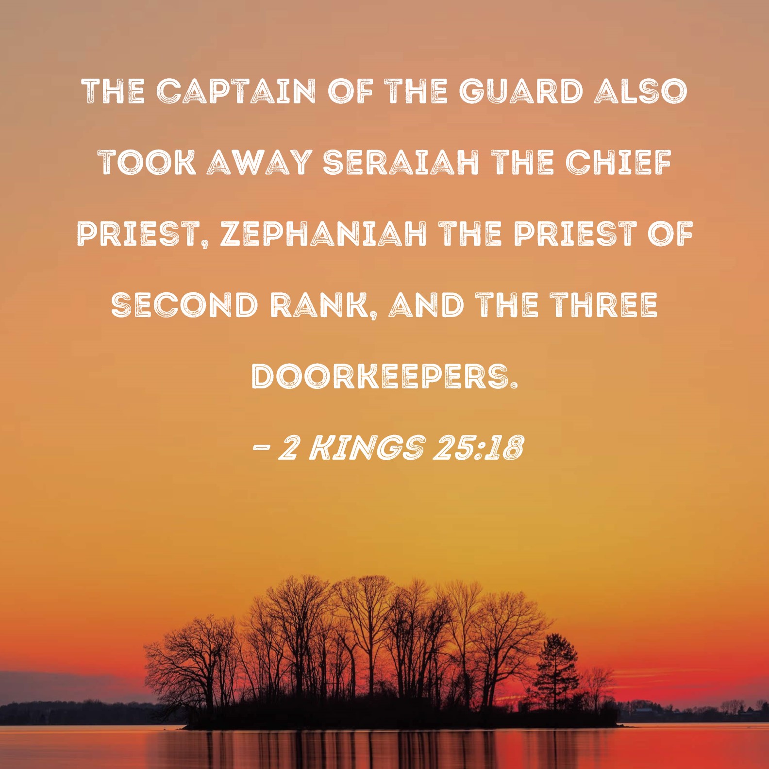 2 Kings 25:18 The captain of the guard also took away Seraiah the chief priest, Zephaniah the priest of second rank, and the three doorkeepers.