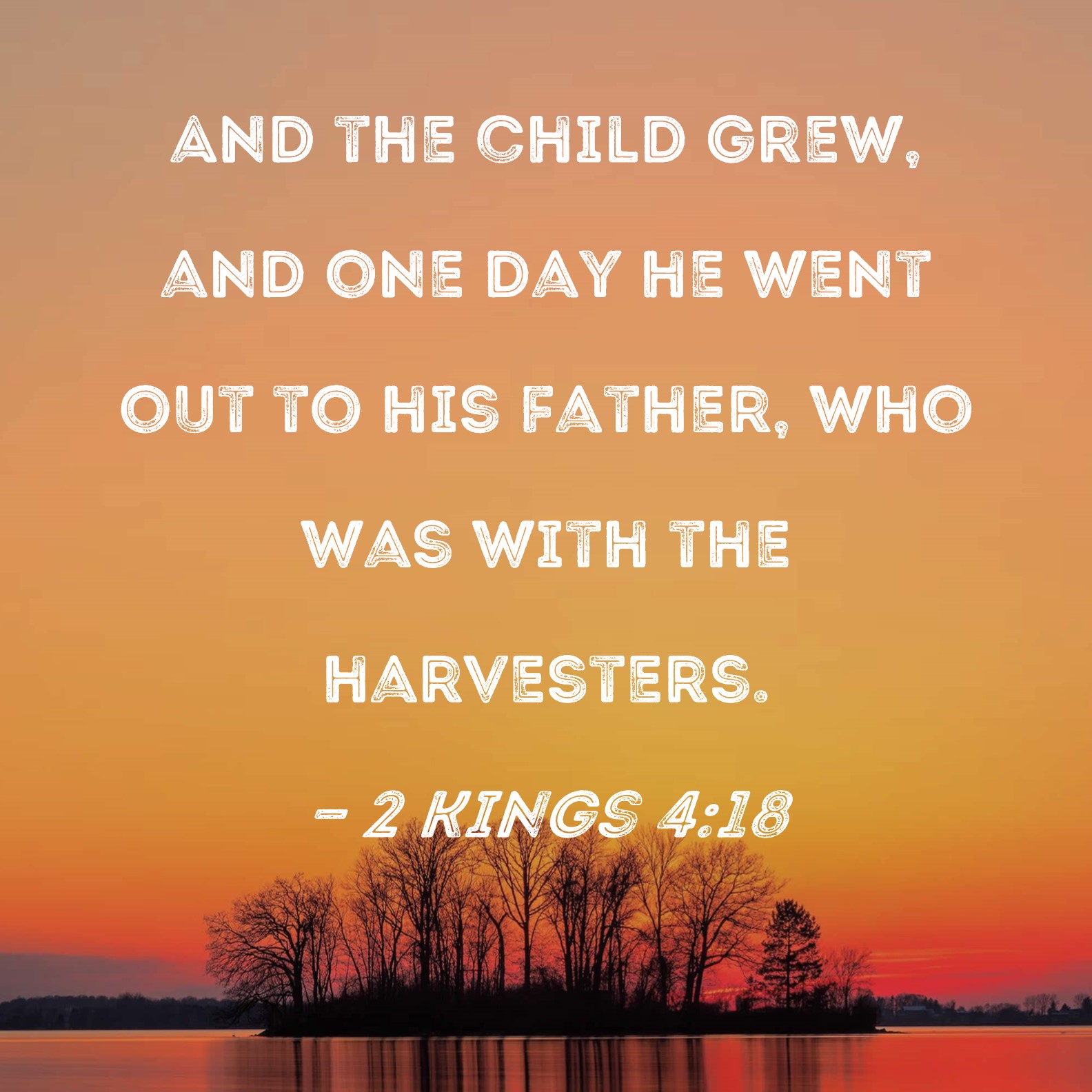 2 Kings 4:18 And the child grew, and one day he went out to his father, who was with the harvesters.