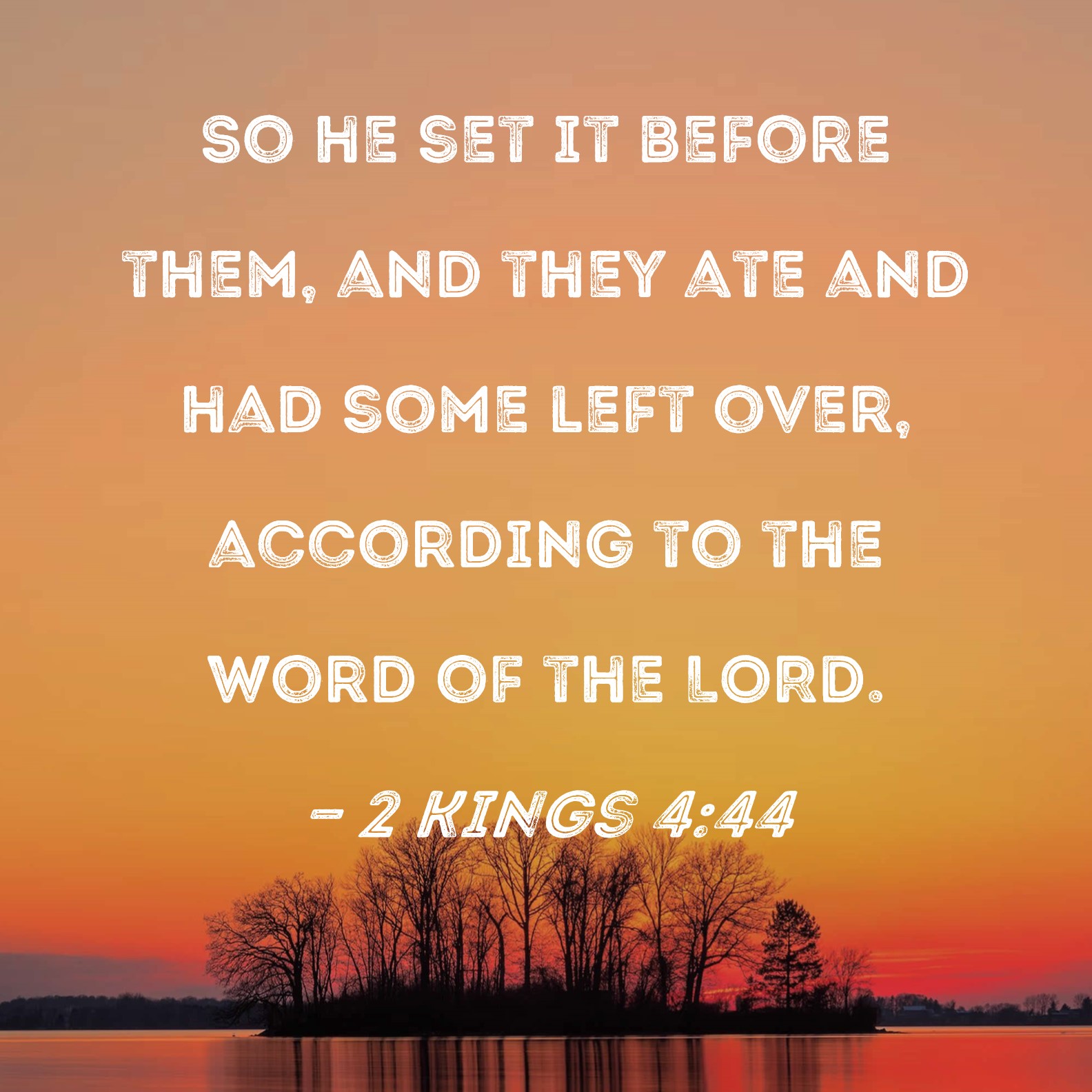 2 Kings 4:44 So he set it before them, and they ate and had some left over, according to the word of the LORD.