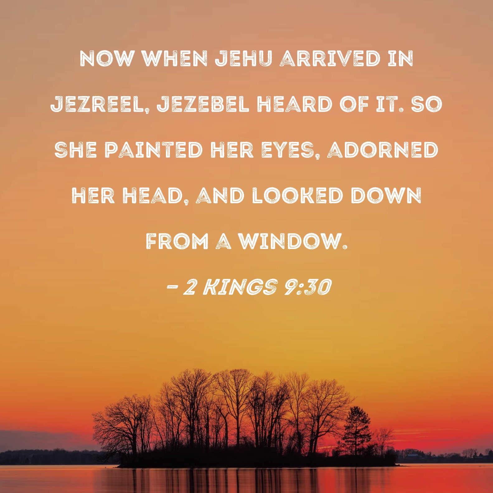 2 Kings 9:30 Now when Jehu arrived in Jezreel, Jezebel heard of it. So she painted her eyes, adorned her head, and looked down from a window.