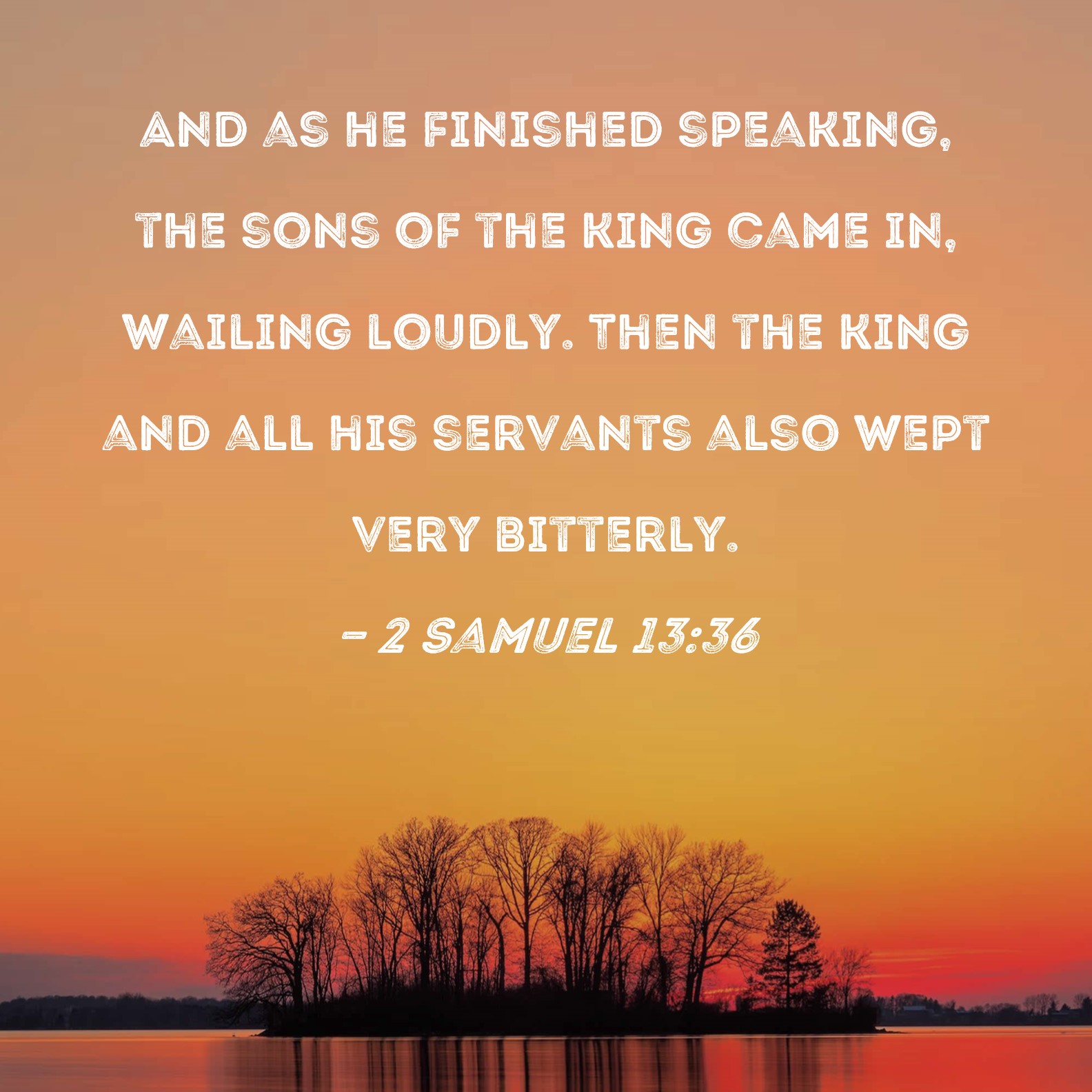 2 Samuel 13:36 And as he finished speaking, the sons of the king came in, wailing loudly. Then the king and all his servants also wept very bitterly.