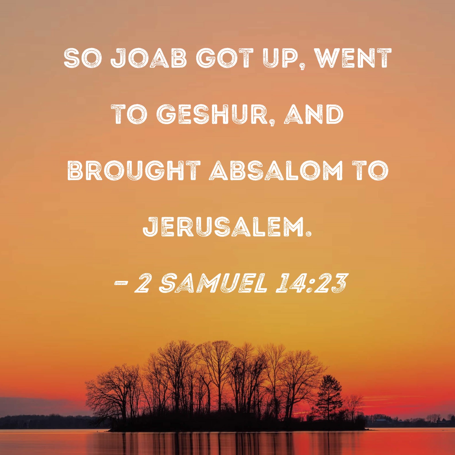 2 Samuel 14:23 So Joab got up, went to Geshur, and brought Absalom to Jerusalem.