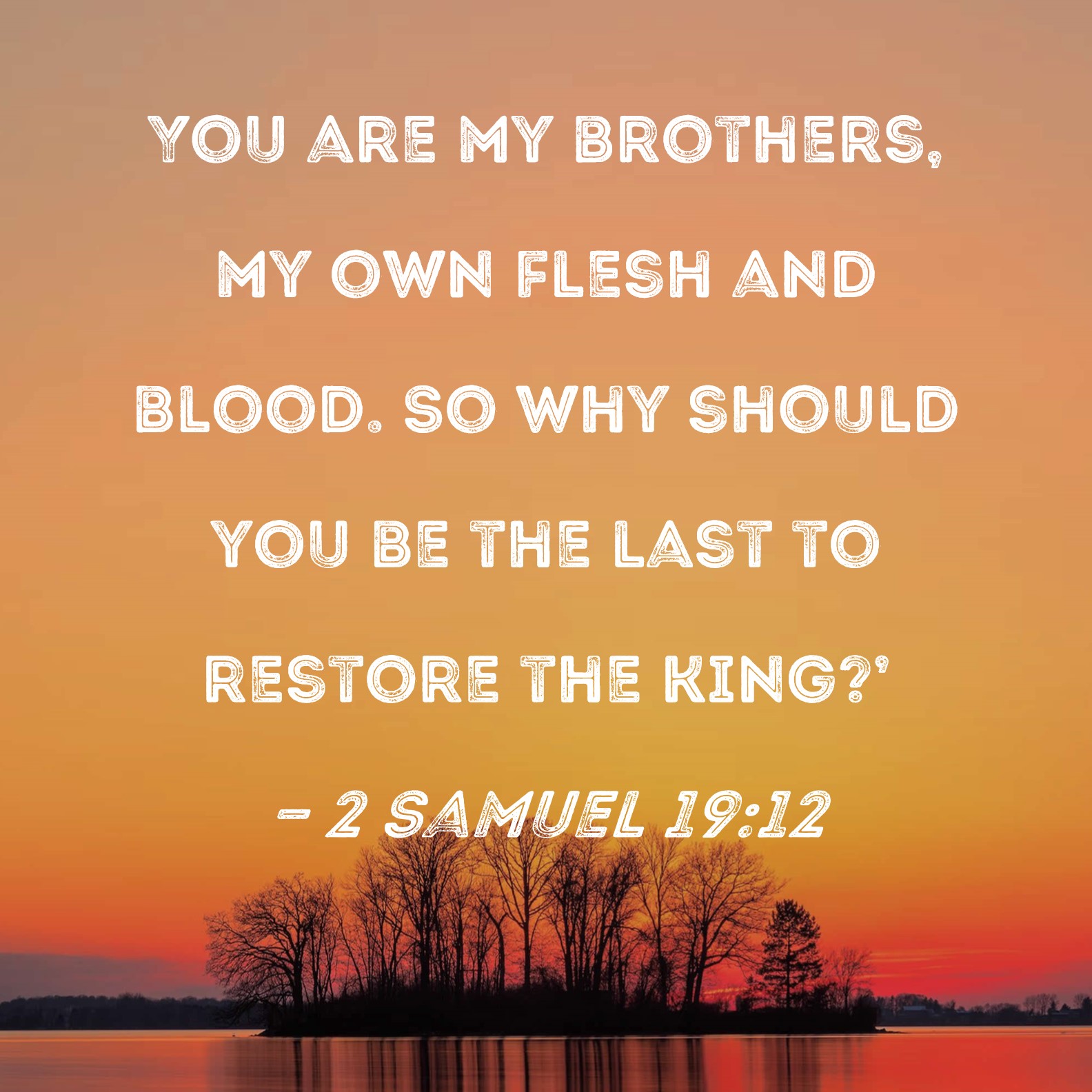 2 Samuel 19:12 You are my brothers, my own flesh and blood. So why should you be the last to restore the king?'