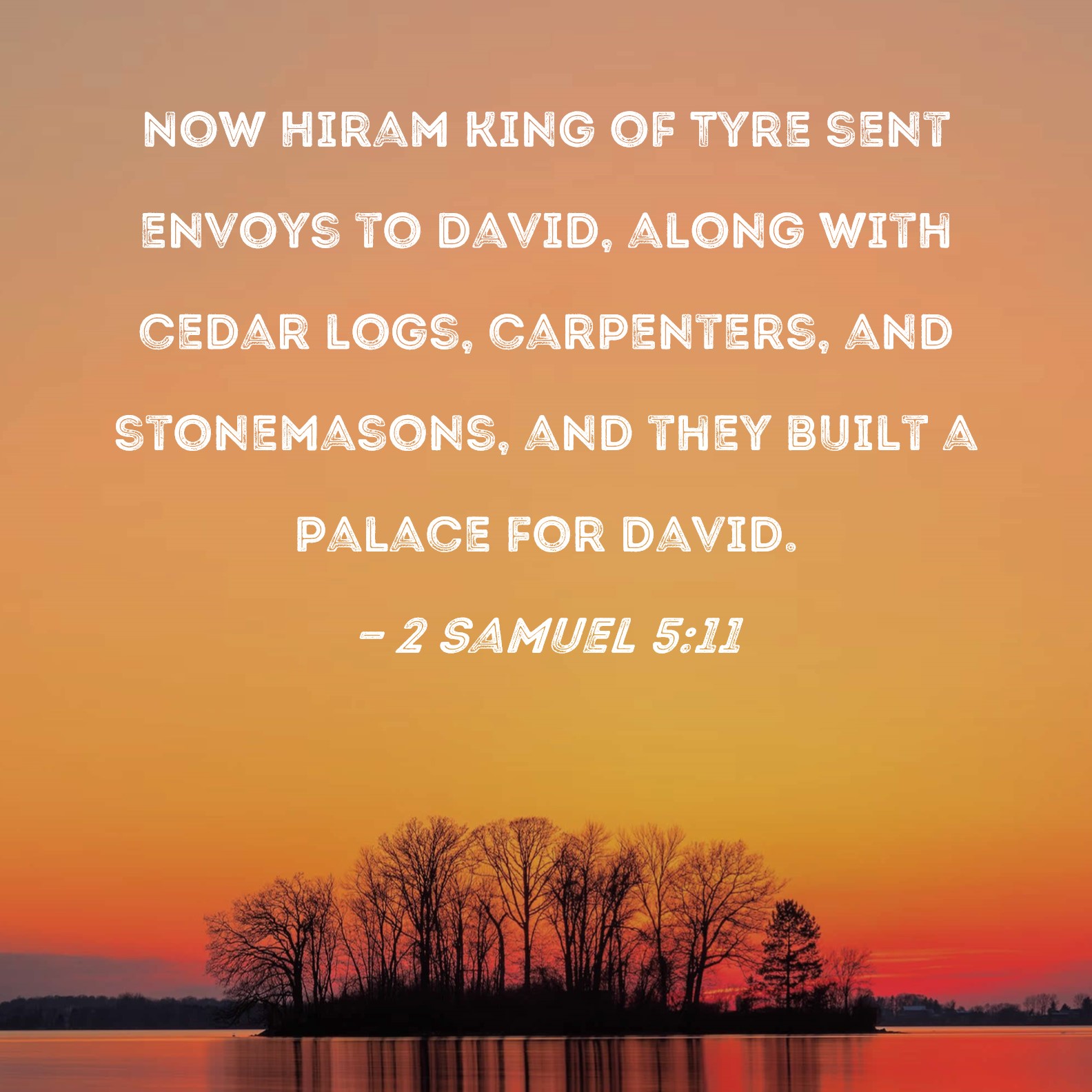 2 Samuel 5:11 Now Hiram king of Tyre sent envoys to David, along with cedar logs, carpenters, and stonemasons, and they built a palace for David.