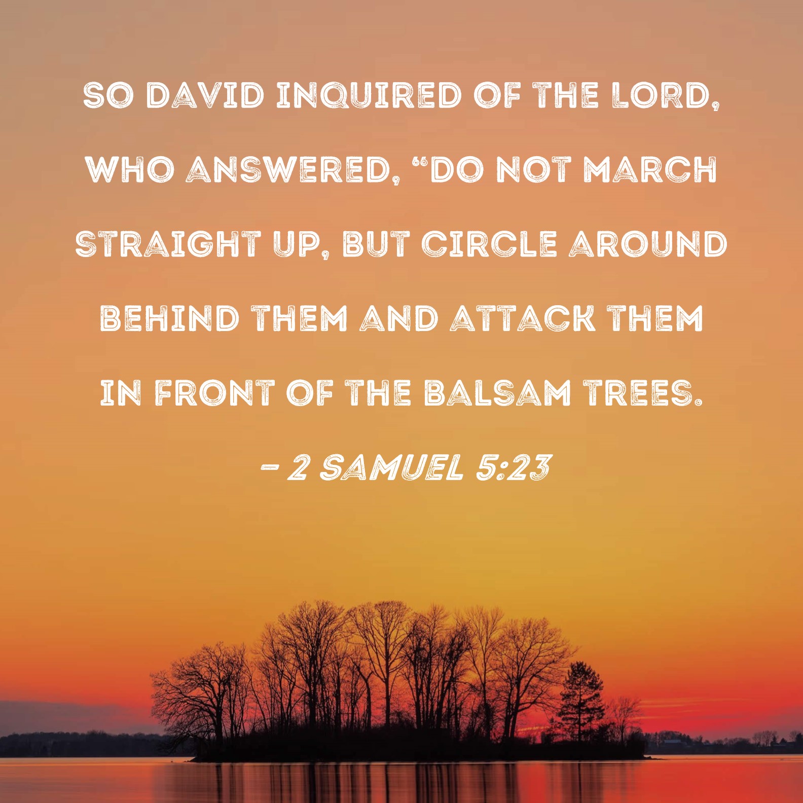 2 Samuel 5:23 So David inquired of the LORD, who answered, "Do not march straight up, but circle around behind them and attack them in front of the balsam trees.