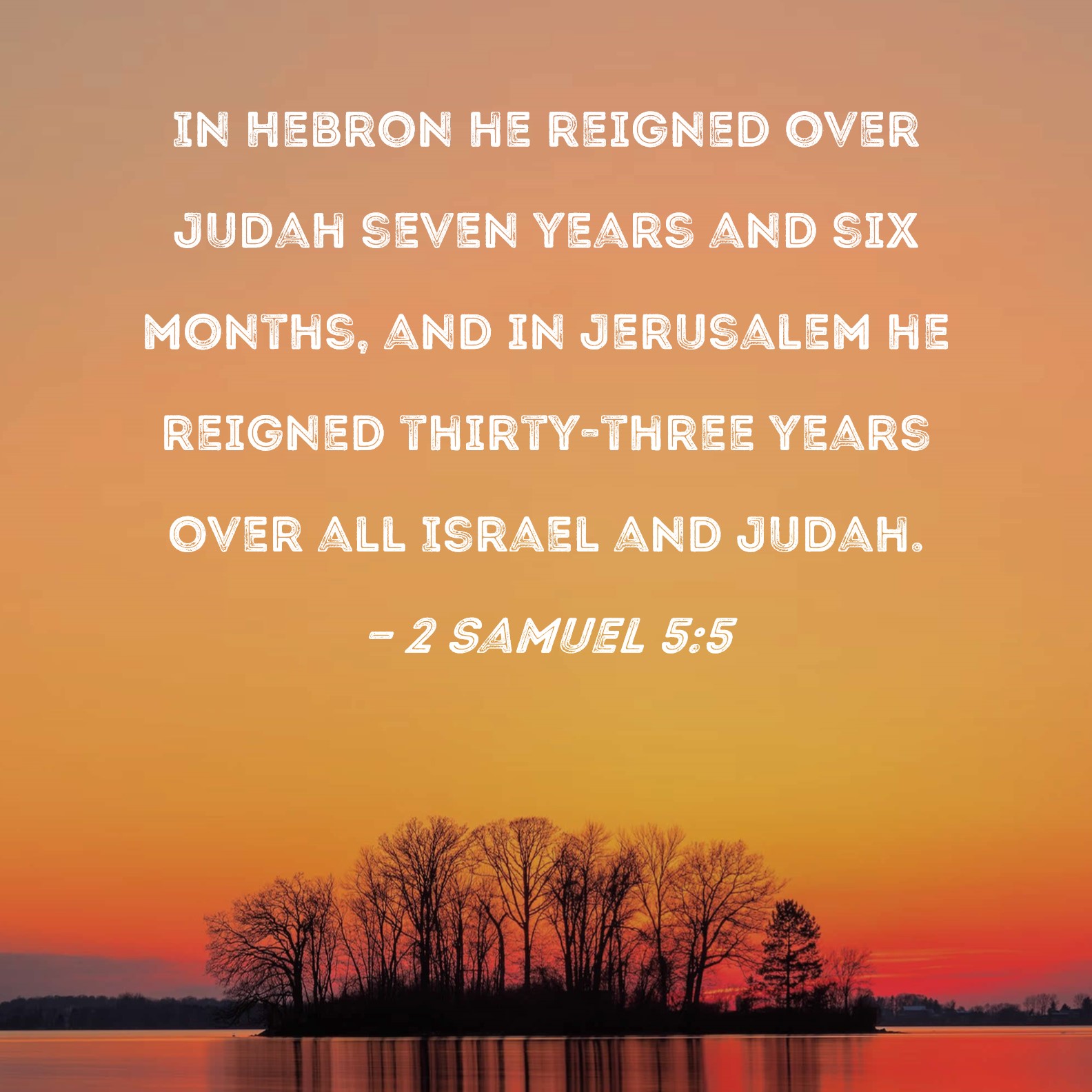 2 Samuel 5:5 In Hebron he reigned over Judah seven years and six months, and in Jerusalem he reigned thirty-three years over all Israel and Judah.