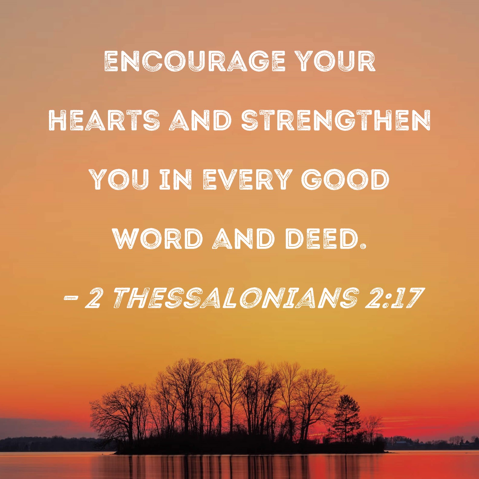 2 Thessalonians 2:17 encourage your hearts and strengthen you in every good word and deed.