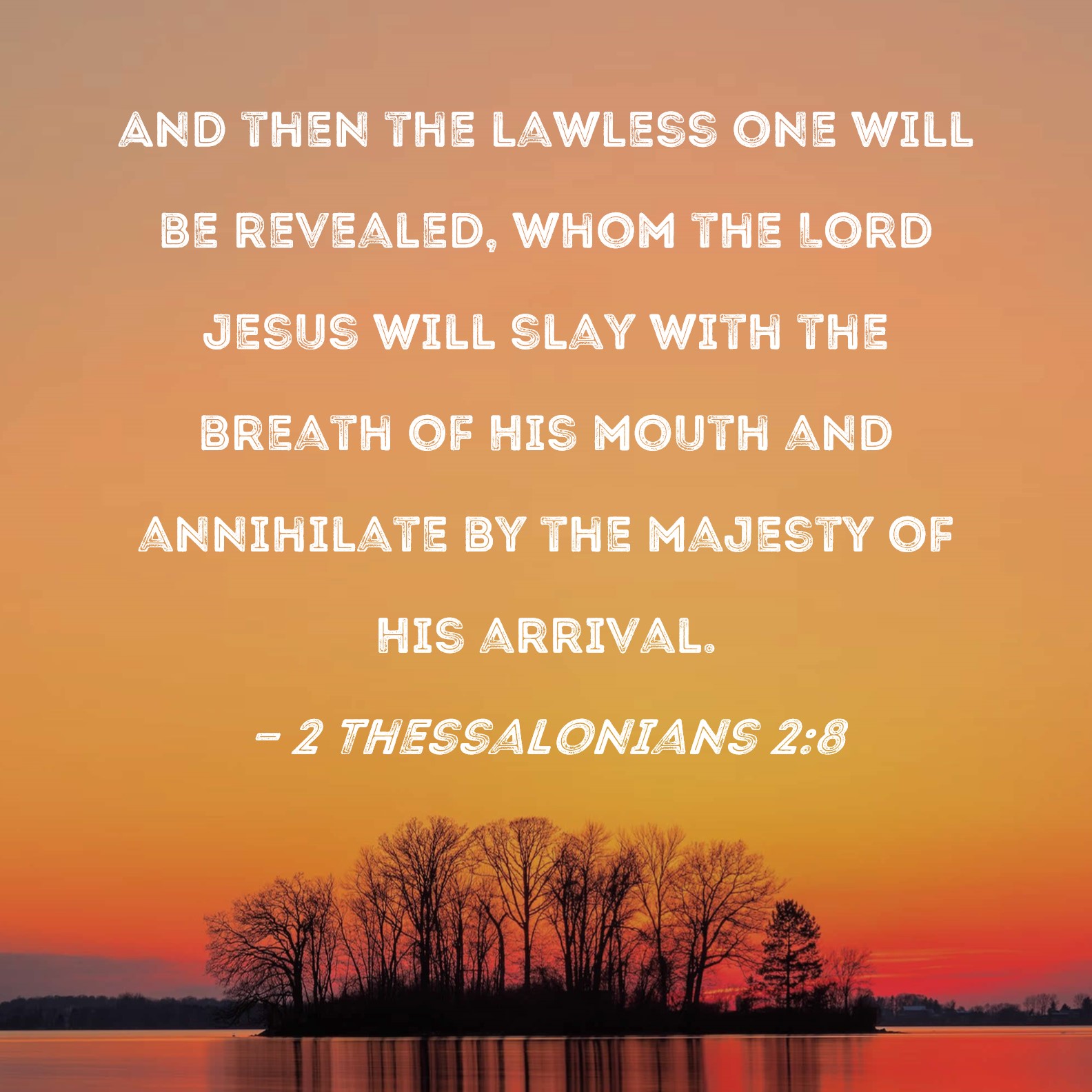 2 Thessalonians 2:8 And then the lawless one will be revealed, whom the Lord Jesus will slay with the breath of His mouth and annihilate by the majesty of His arrival.