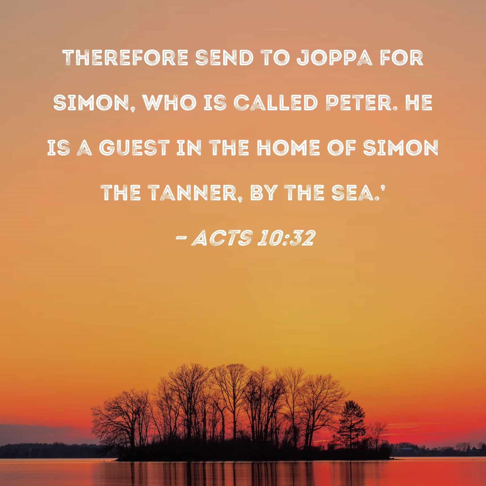 Acts 10:32 Therefore send to Joppa for Simon, who is called Peter. He is a guest in the home of Simon the tanner, by the sea.'