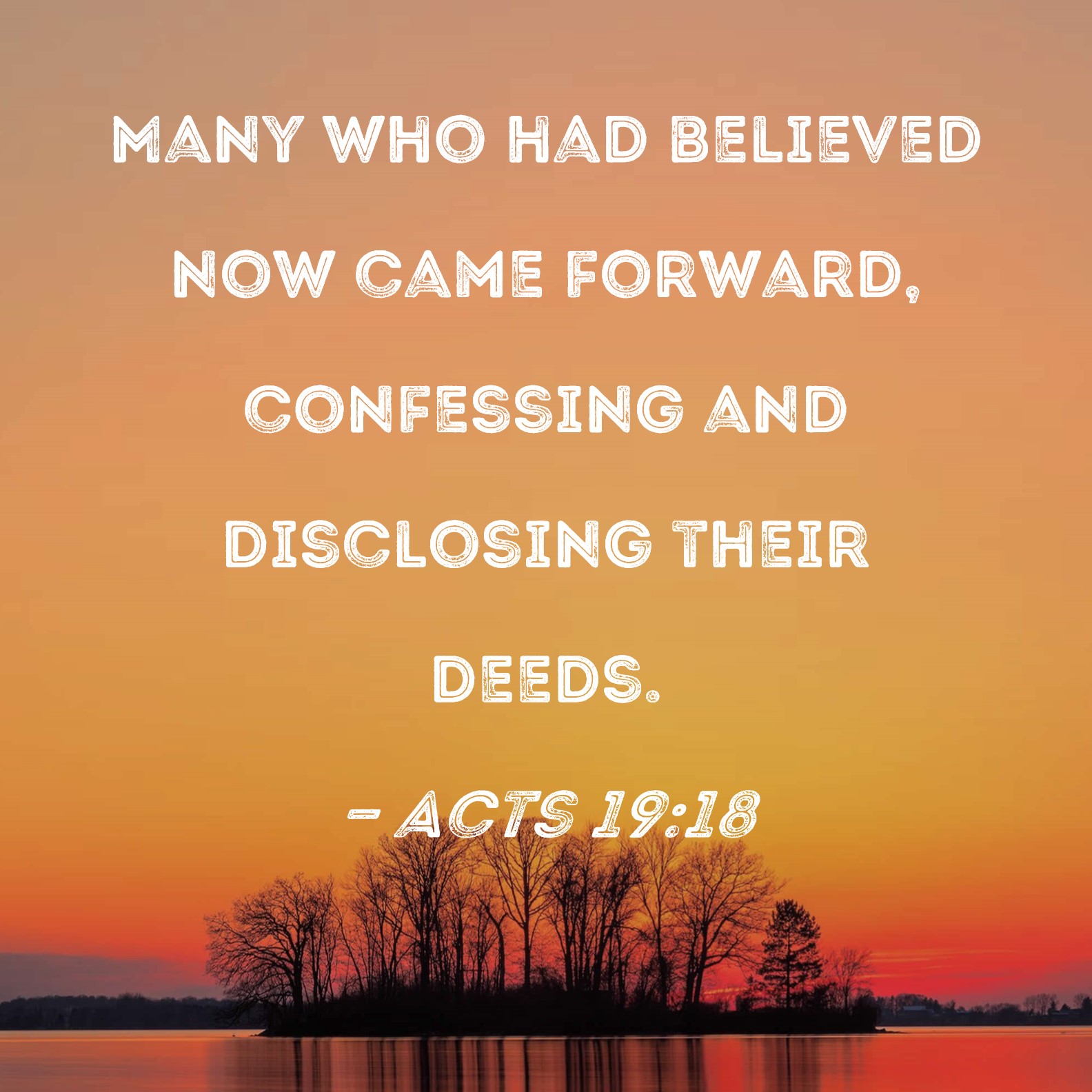Acts 19:18 Many who had believed now came forward, confessing and disclosing their deeds.