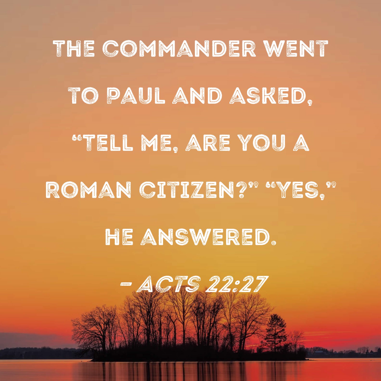 Acts 22:27 The commander went to Paul and asked, "Tell me, are you a Roman citizen?" "Yes," he answered.