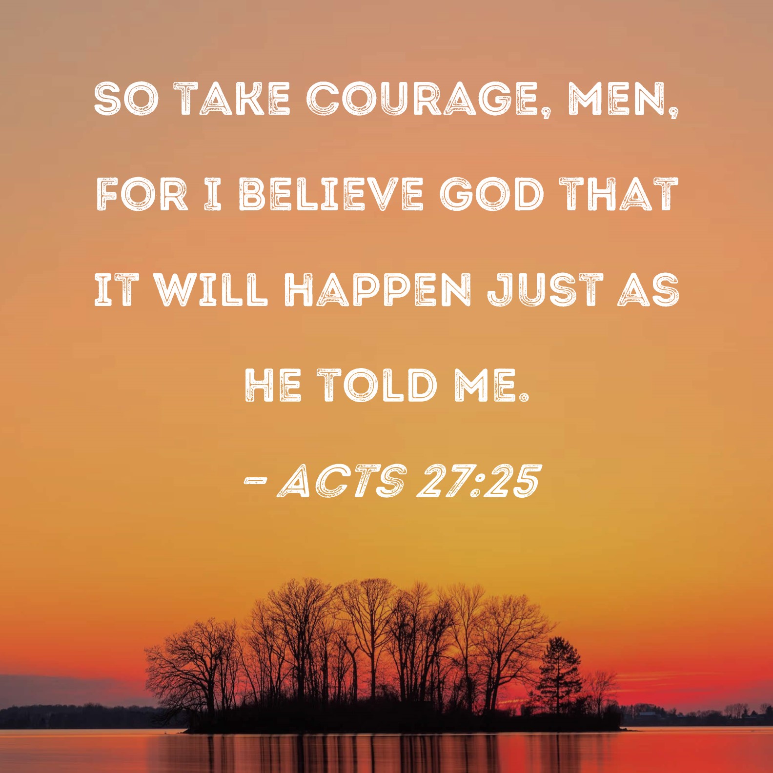 Acts 27:25 So take courage, men, for I believe God that it will happen just as He told me.