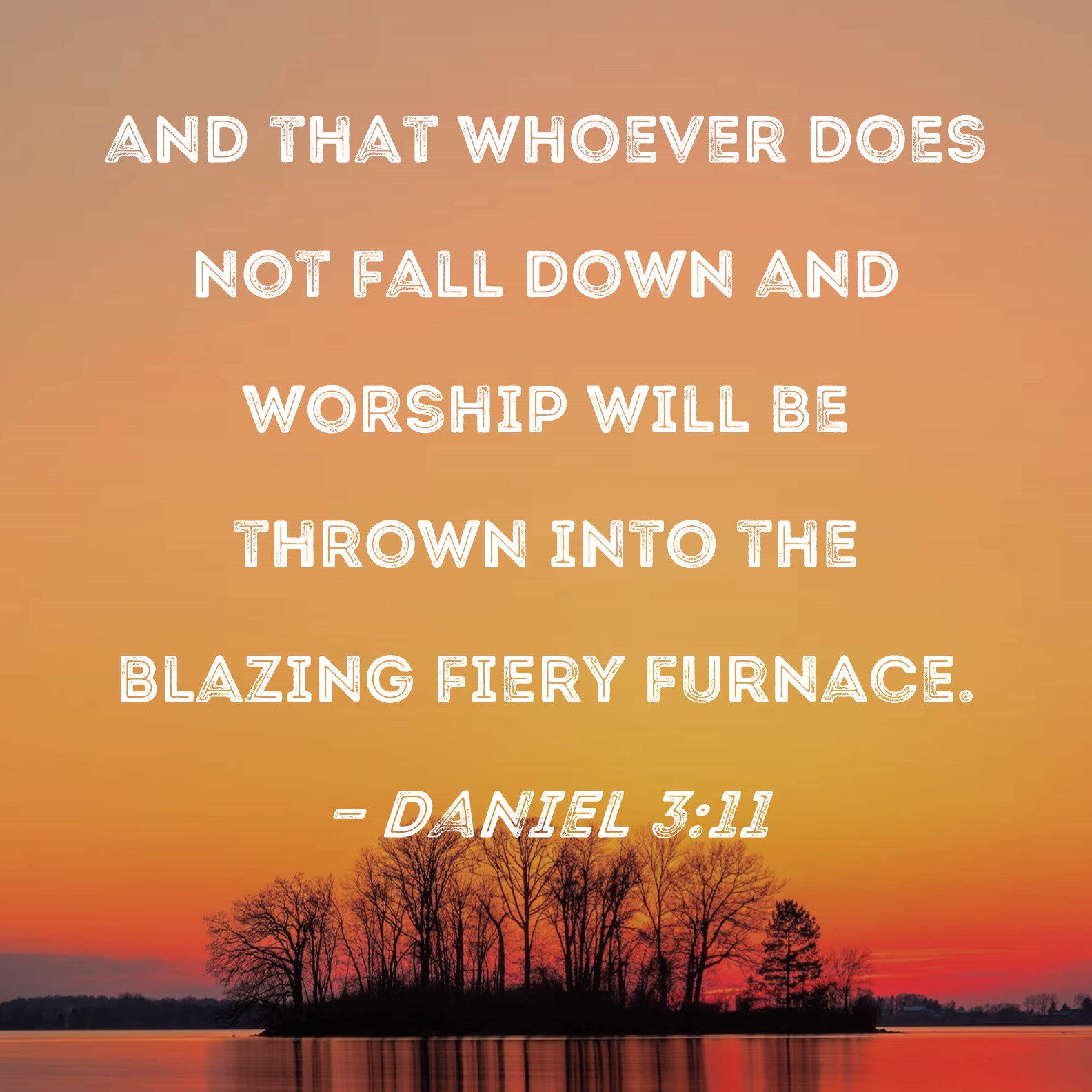 Daniel 3:11 and that whoever does not fall down and worship will be thrown into the blazing fiery furnace.