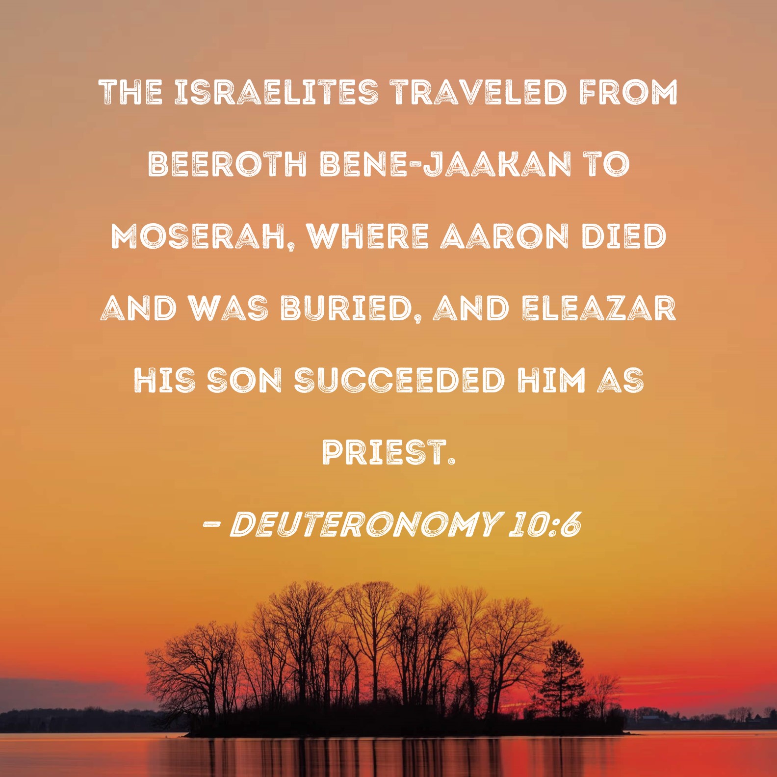Deuteronomy 10:6 The Israelites traveled from Beeroth Bene-jaakan to Moserah, where Aaron died and was buried, and Eleazar his son succeeded him as priest.