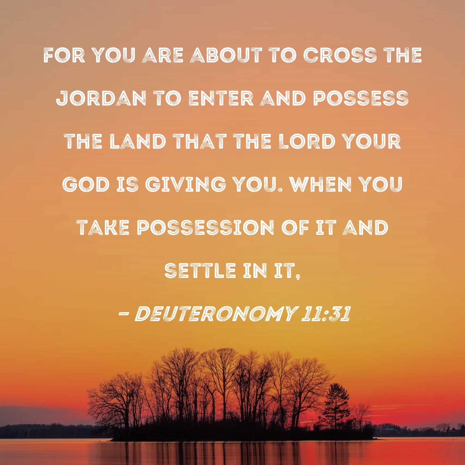 Deuteronomy 11:31 For you are about to cross the Jordan to enter and possess the land that the LORD your God is giving you. When you take possession of it and settle in it,