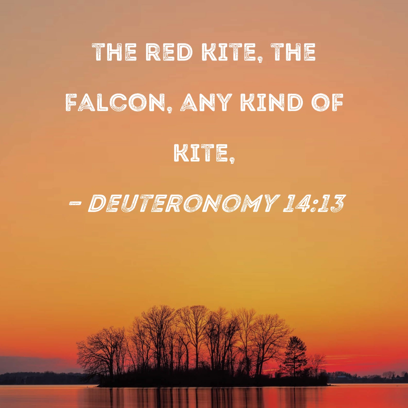 BSB: the red kite, the falcon, any kind of kite, KJV: And the glede, and the kite, and the vulture after his kind, DRB: The ringtail, and the vulture, and the kite according to their kind: DBT: and the falcon, and the kite, and the black kite after its kind; ERV: and the glede, and the falcon, and the kite after its kind; WBT: And the glede, and the kite, and the vultur after his kind, WEB: the red kite, the falcon, the kite of any kind, YLT: and the glede, and the kite, and the vulture after its kind,Links Deuteronomy 14:13 NIV • Deuteronomy 14:13 NLT • Deuteronomy 14:13 ESV • Deuteronomy 14:13 NASB • Deuteronomy 14:13 KJV • Deuteronomy 14:13 Interlinear • Deuteronomy 14:13 Commentaries • Deuteronomy 14:13 Parallel Texts • Deuteronomy 14:13 Bible Apps • Deuteronomy 14:13 Parallel • Bible Hub |