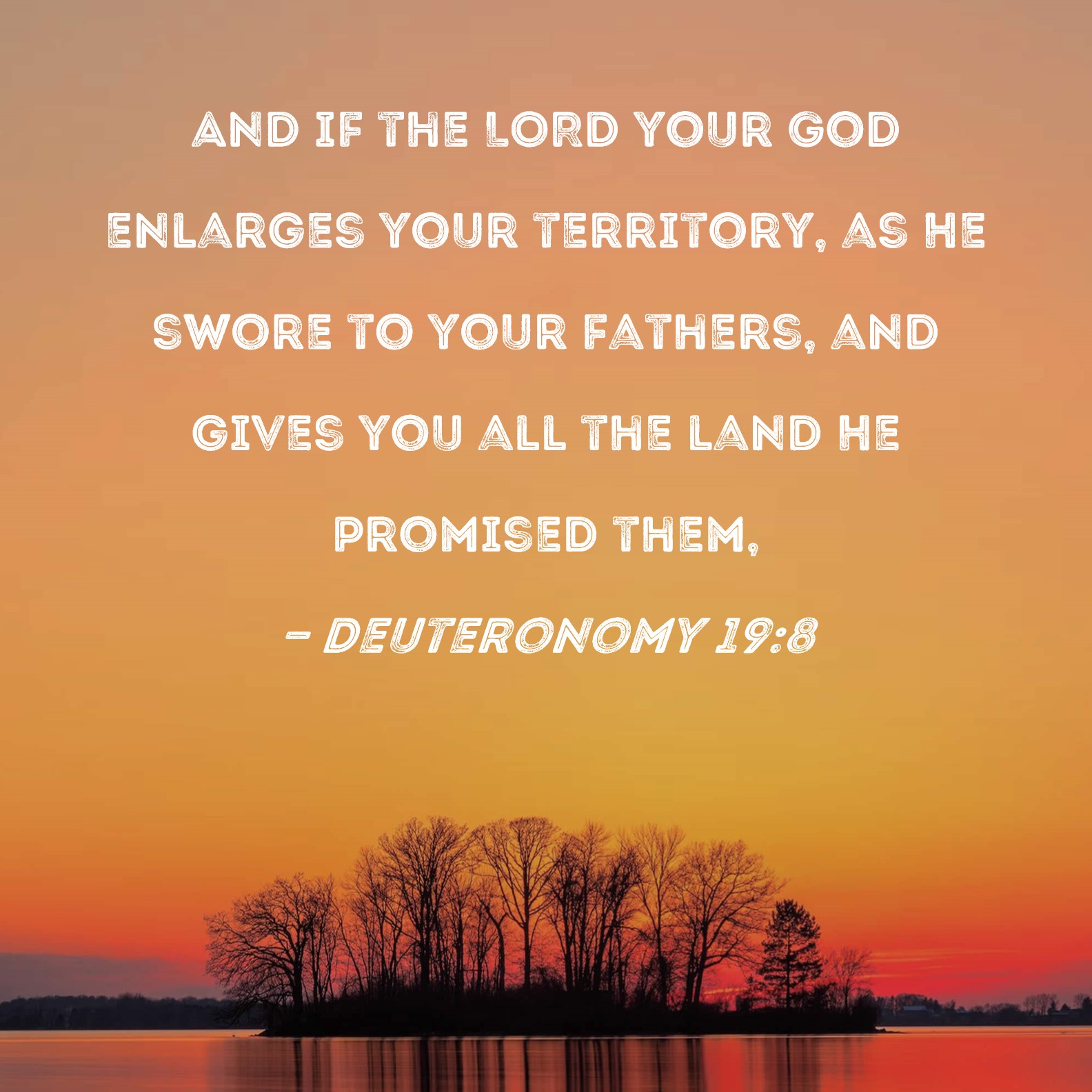 Deuteronomy 19:8 And if the LORD your God enlarges your territory, as He swore to your fathers, and gives you all the land He promised them,