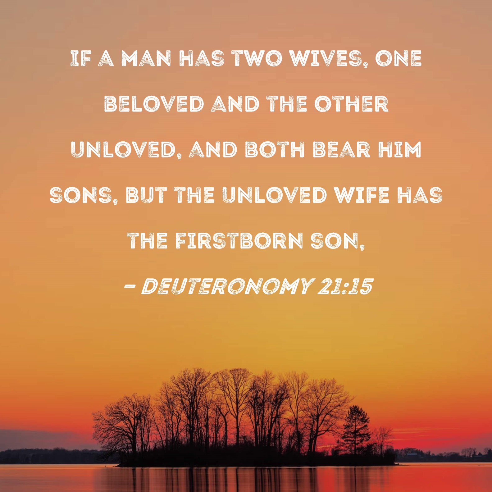 Deuteronomy 21:15 If a man has two wives, one beloved and the other unloved, and both bear him sons, but the unloved wife has the firstborn son,