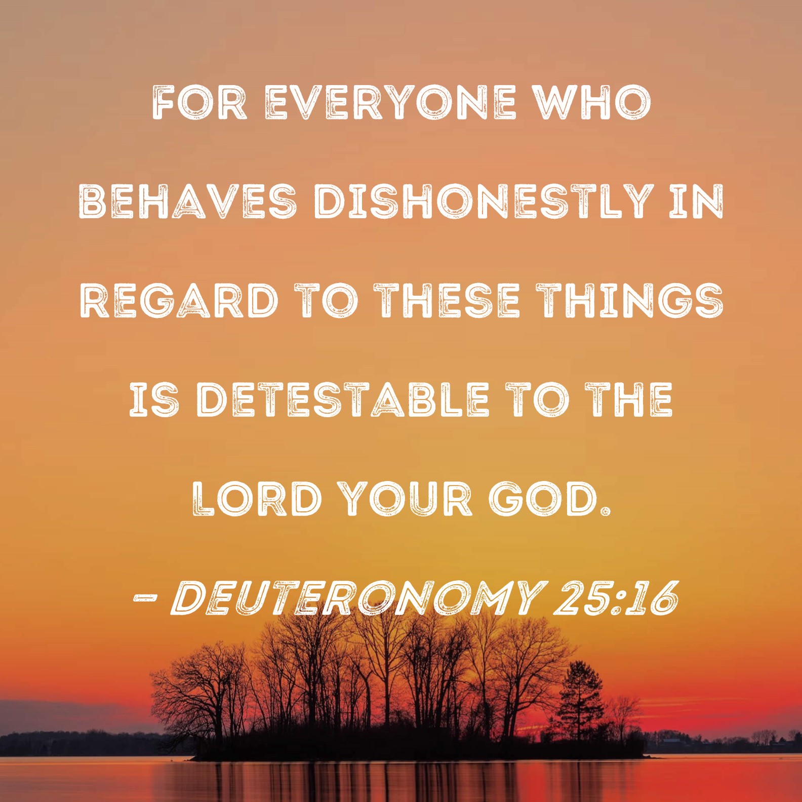 Deuteronomy 25:16 For everyone who behaves dishonestly in regard to these things is detestable to the LORD your God.