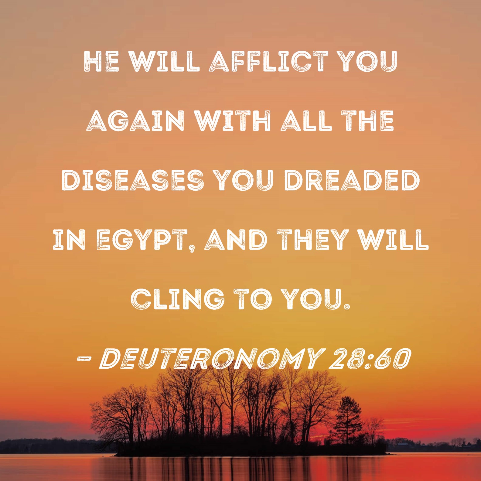Deuteronomy 28:60 He will afflict you again with all the diseases you dreaded in Egypt, and they will cling to you.