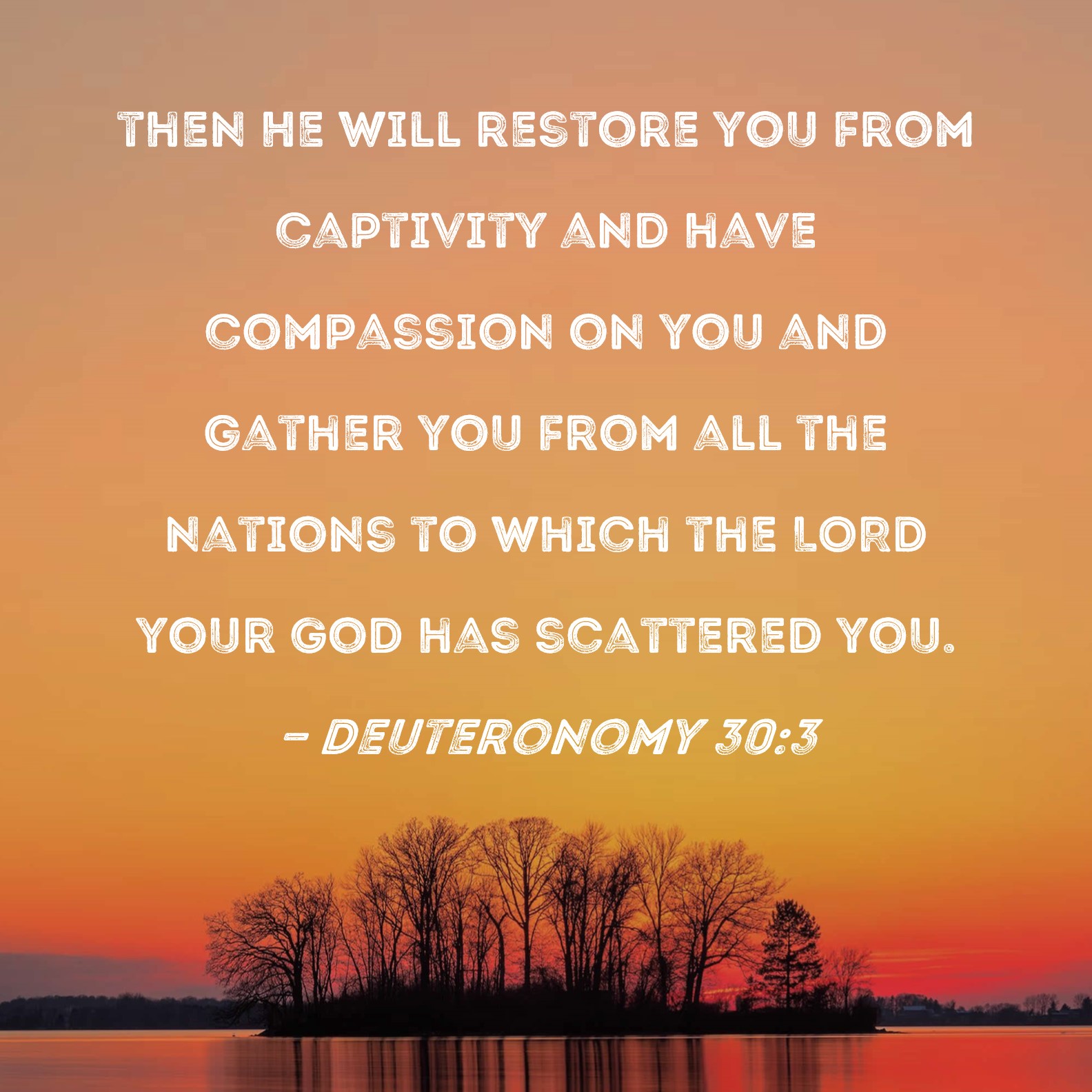 Deuteronomy 30:3 then He will restore you from captivity and have compassion on you and gather you from all the nations to which the LORD your God has scattered you.