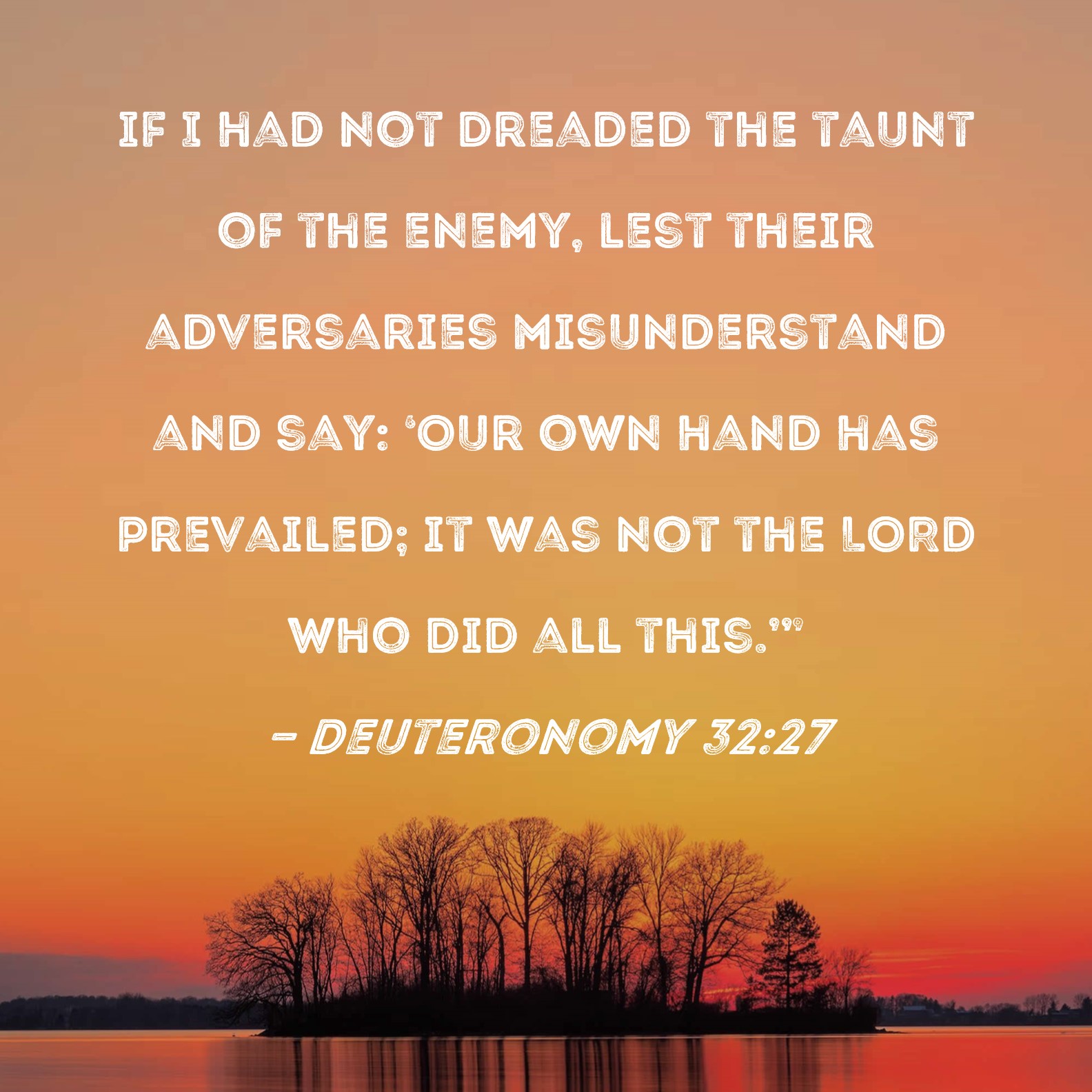 Deuteronomy 32:27 if I had not dreaded the taunt of the enemy, lest their adversaries misunderstand and say: 'Our own hand has prevailed; it was not the LORD who did all this.'"