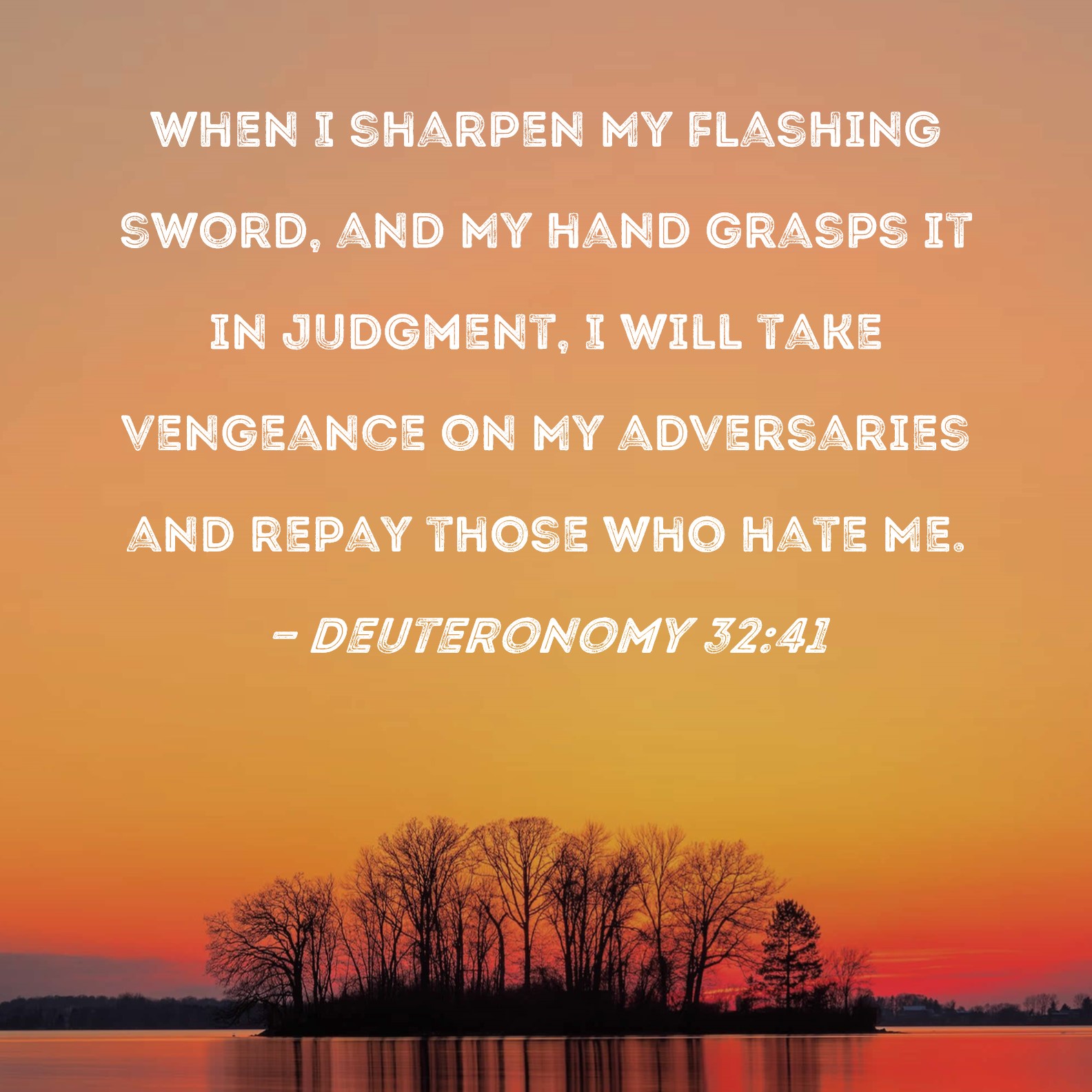 Deuteronomy 32:41 when I sharpen My flashing sword, and My hand grasps it in judgment, I will take vengeance on My adversaries and repay those who hate Me.