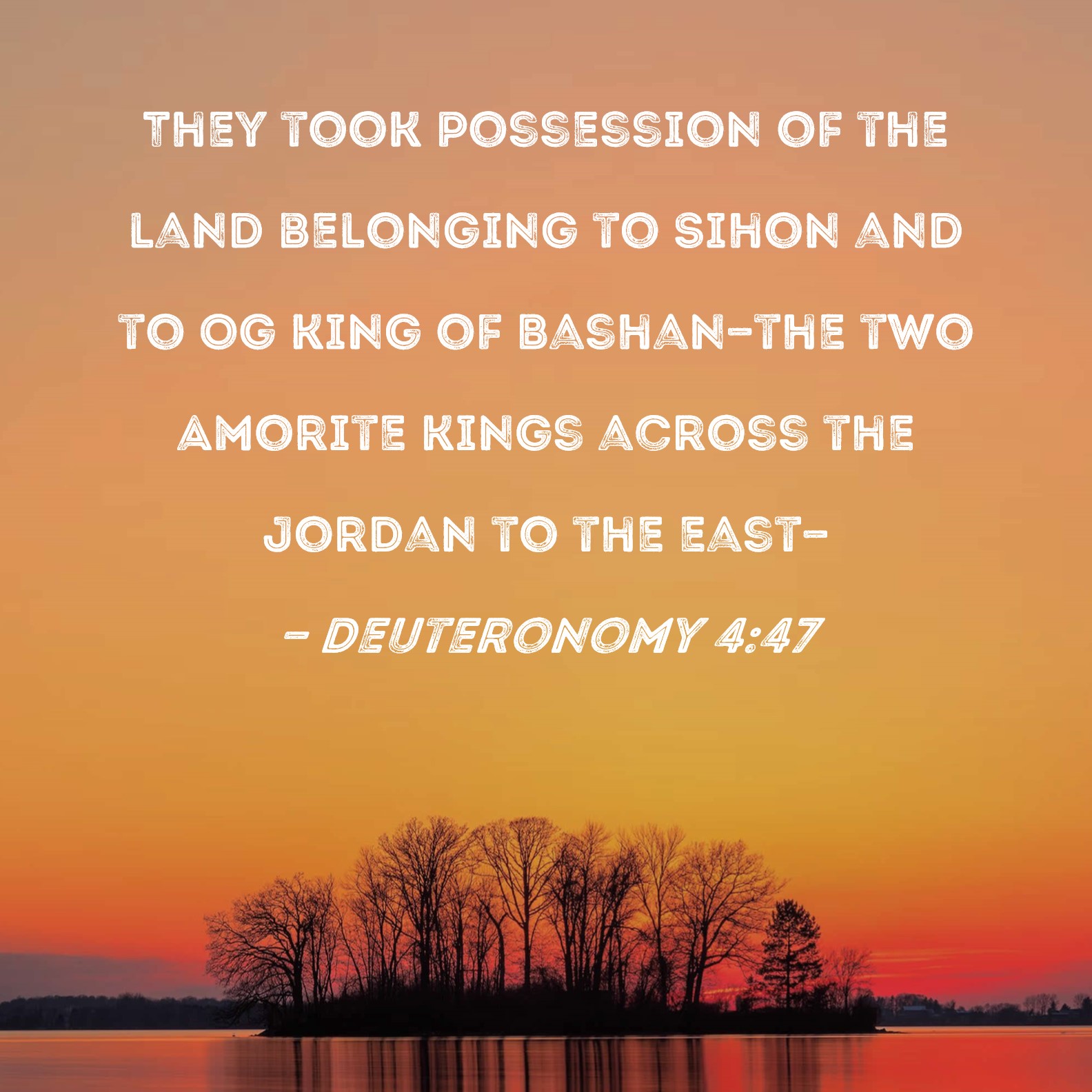 Deuteronomy 4:47 They took possession of the land belonging to Sihon and to Og king of Bashan--the two Amorite kings across the Jordan to the east--