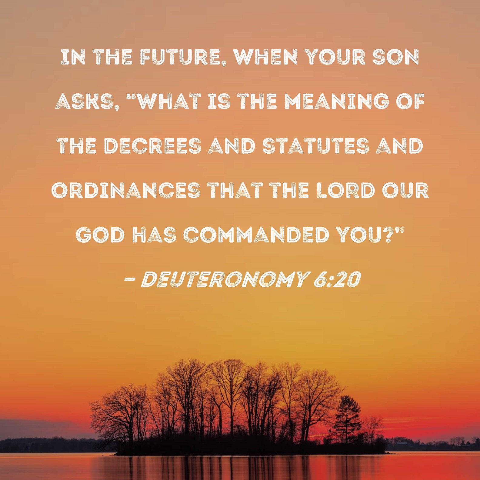 Deuteronomy 6:20 In the future, when your son asks, "What is the meaning of the decrees and statutes and ordinances that the LORD our God has commanded you?"