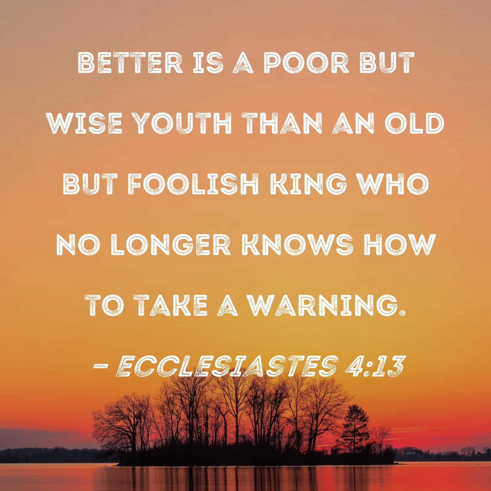Ecclesiastes 4:13 Better is a poor but wise youth than an old but foolish king who no longer knows how to take a warning.