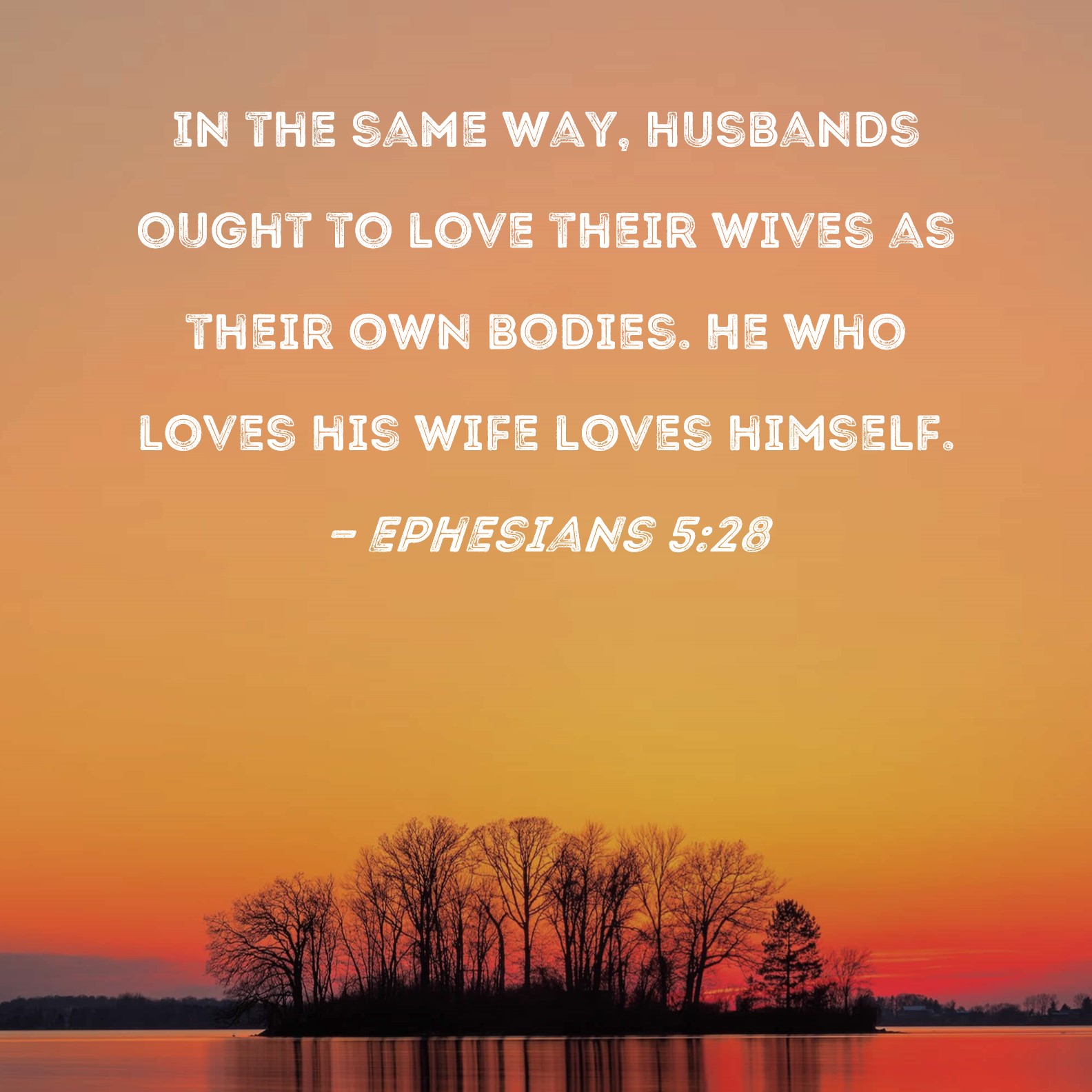 In the same way, husbands ought to love their wives as their own bodies. He who loves his wife loves himself.