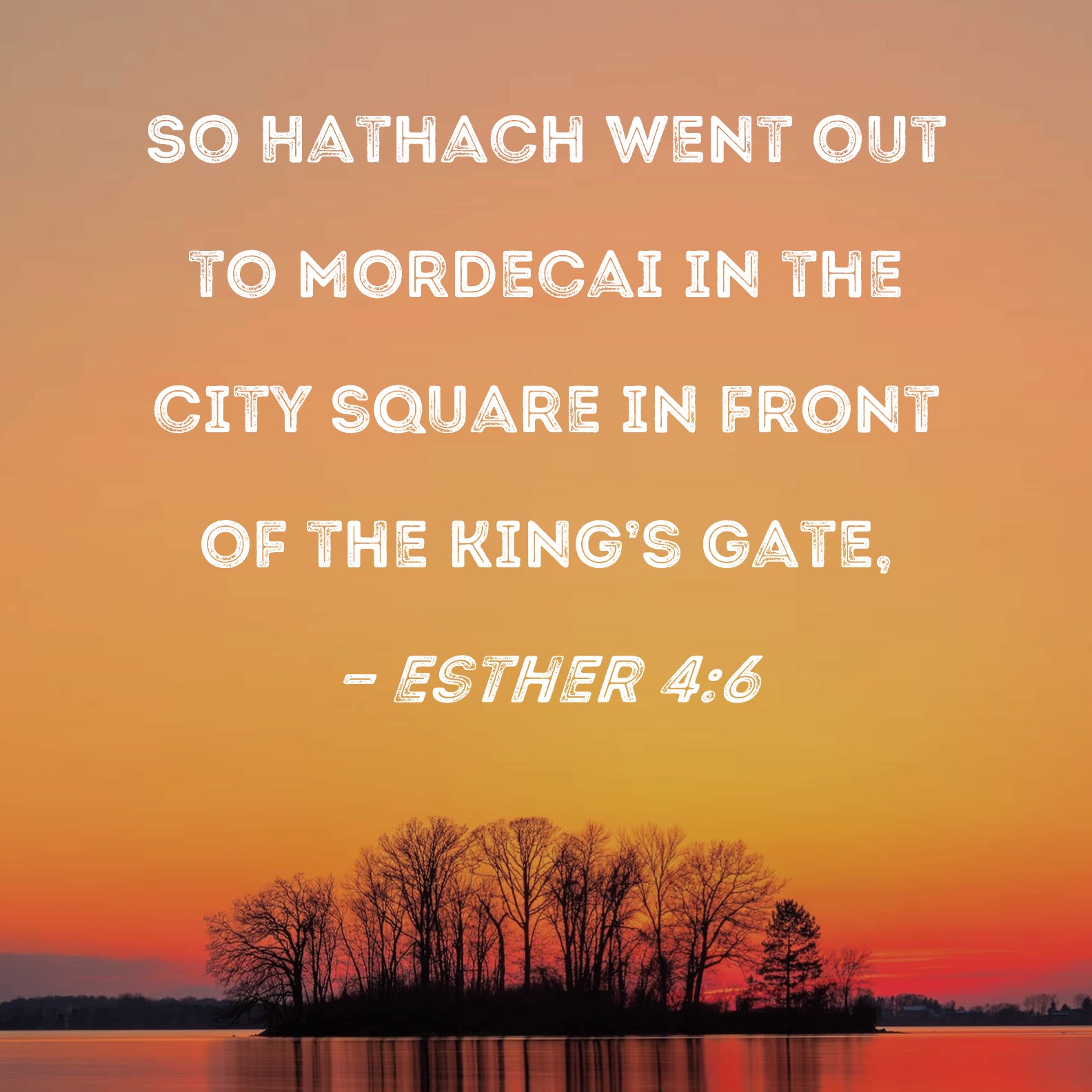 Esther 4:6 So Hathach went out to Mordecai in the city square in front of the king's gate,