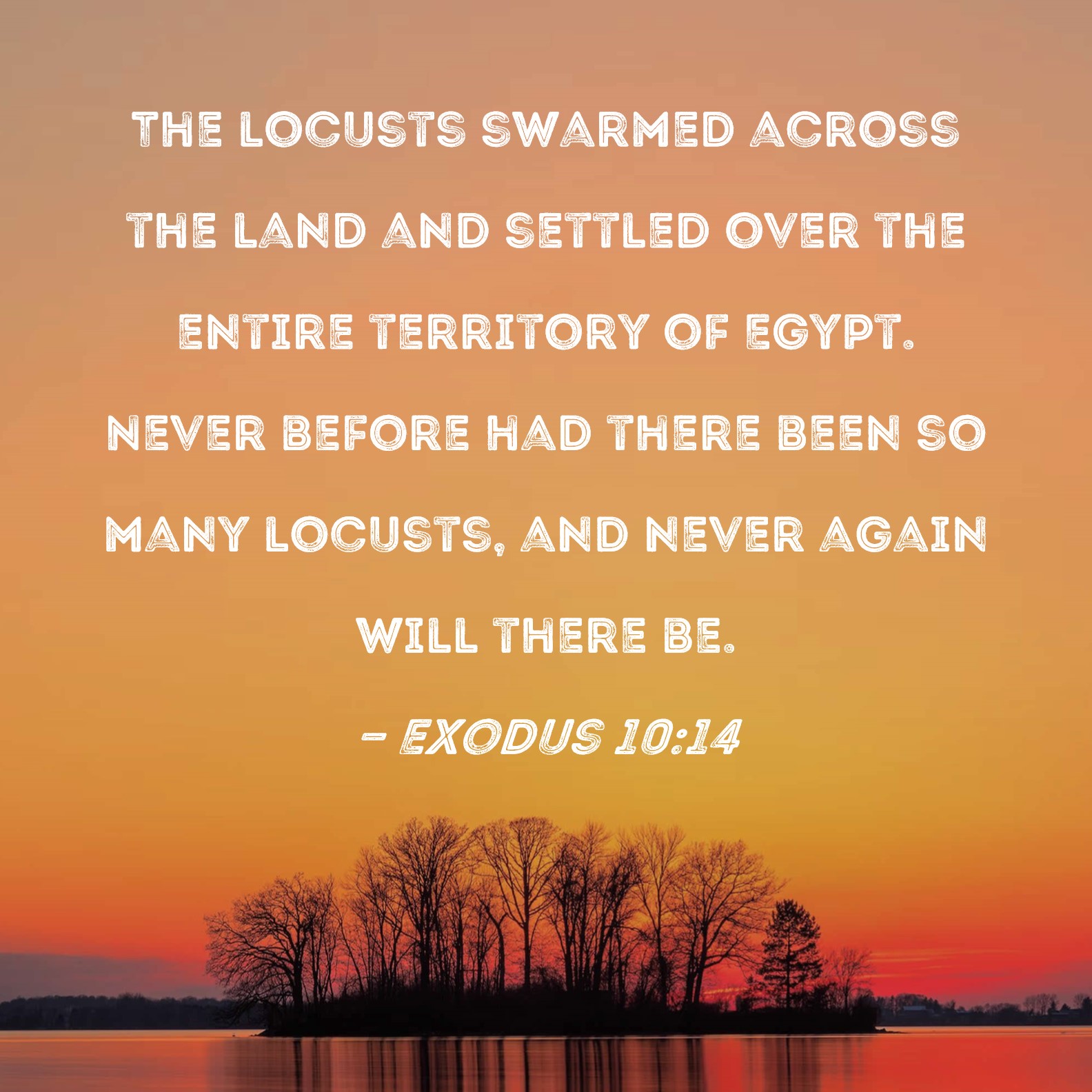 Exodus 10:14 The locusts swarmed across the land and settled over the entire territory of Egypt. Never before had there been so many locusts, and never again will there be.