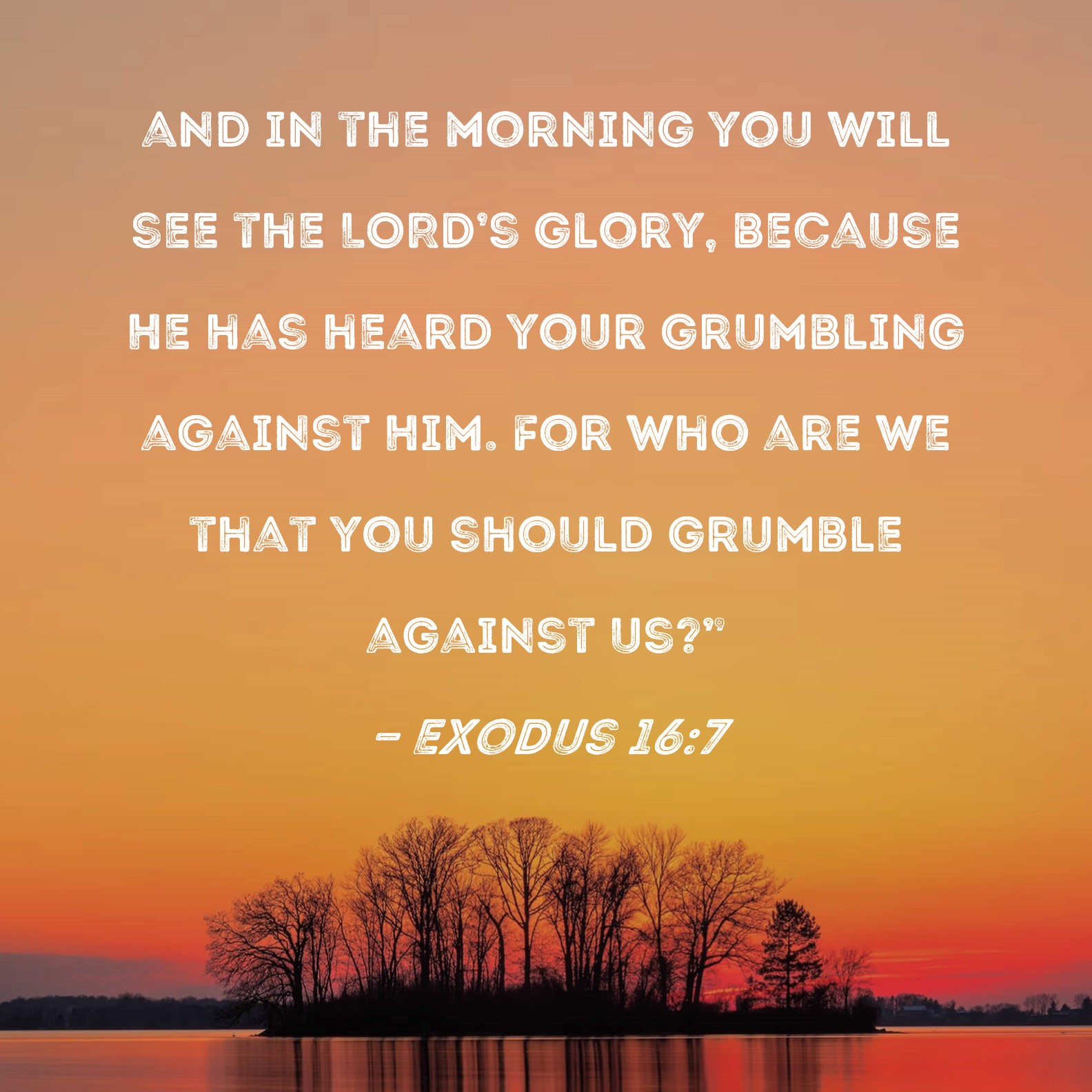 Exodus 16:7 and in the morning you will see the LORD's glory, because He has heard your grumbling against Him. For who are we that you should grumble against us?"