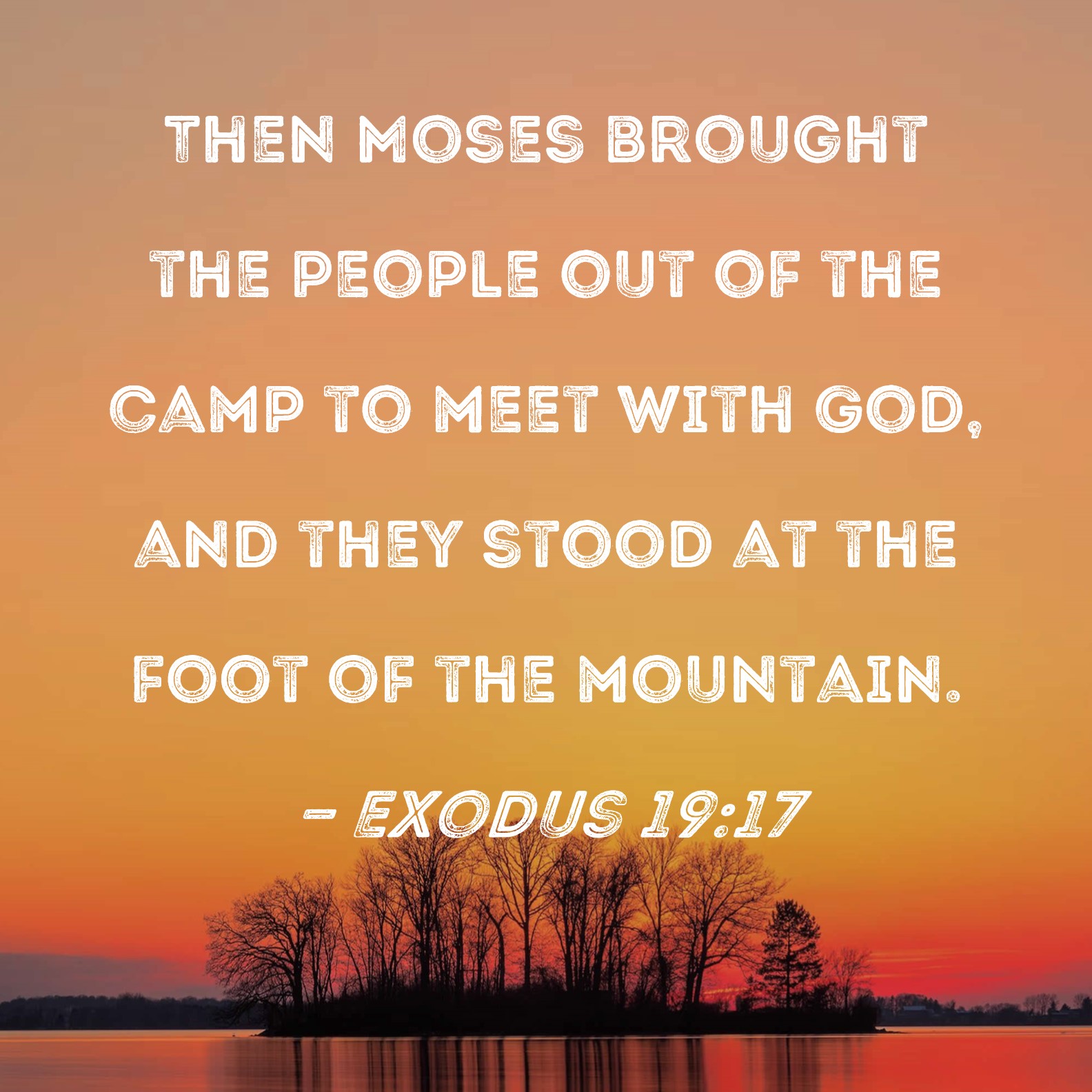 Exodus 19:17 Then Moses brought the people out of the camp to meet with God, and they stood at the foot of the mountain.