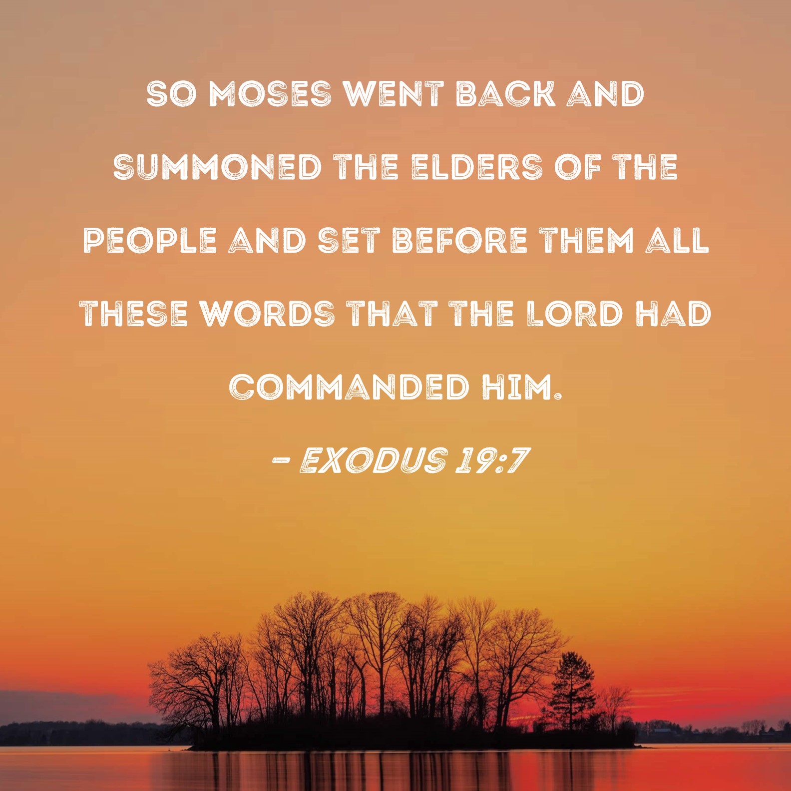 Exodus 19:7 So Moses went back and summoned the elders of the people and set before them all these words that the LORD had commanded him.