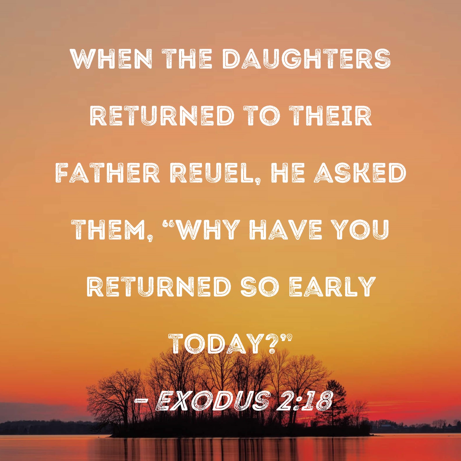 Exodus 2:18 When the daughters returned to their father Reuel, he asked them, "Why have you returned so early today?"