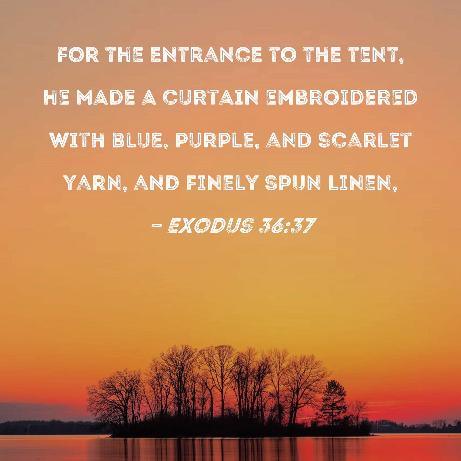 Exodus 36:37 For the entrance to the tent, he made a curtain embroidered with blue, purple, and scarlet yarn, and finely spun linen,