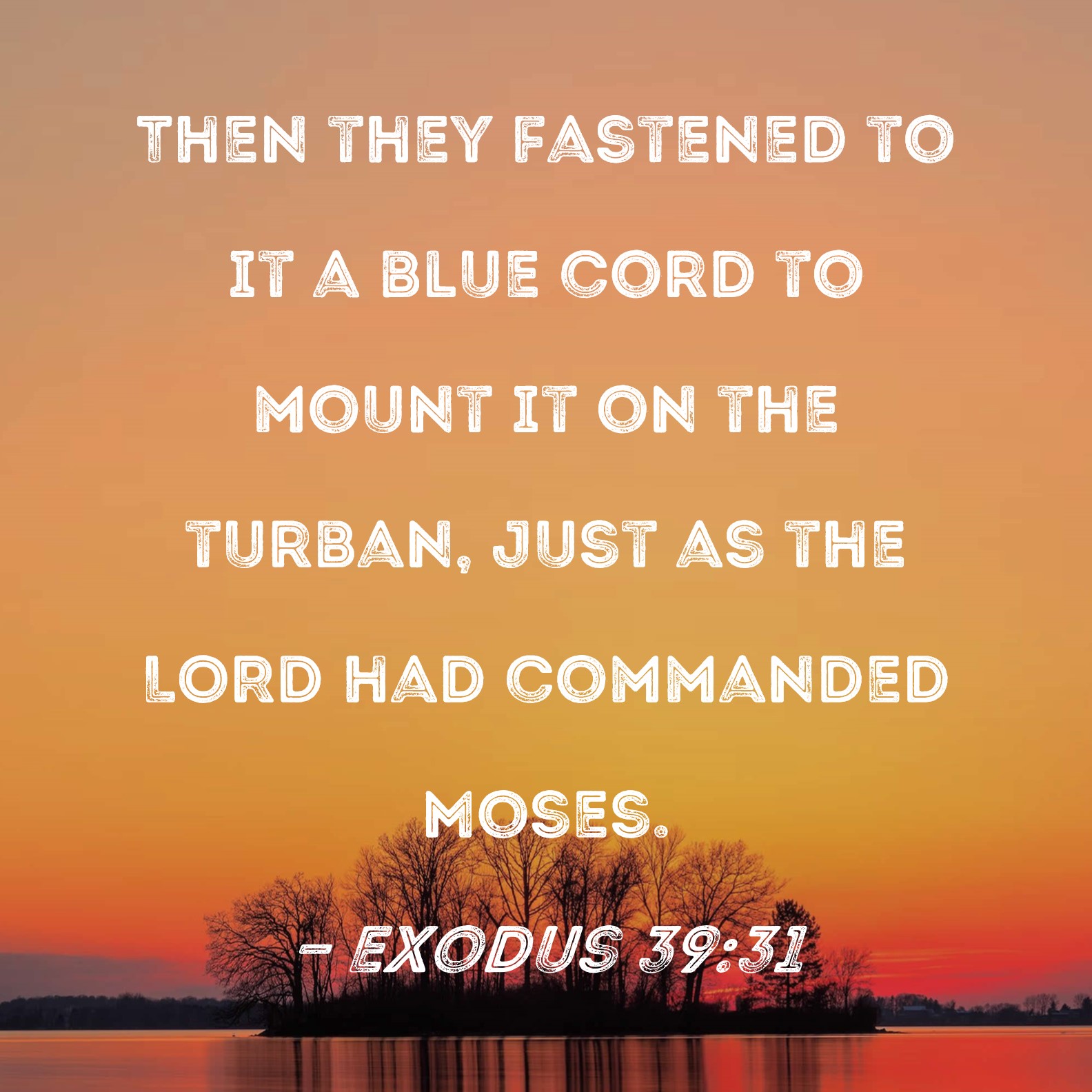 Exodus 39:31 Then they fastened to it a blue cord to mount it on the turban, just as the LORD had commanded Moses.