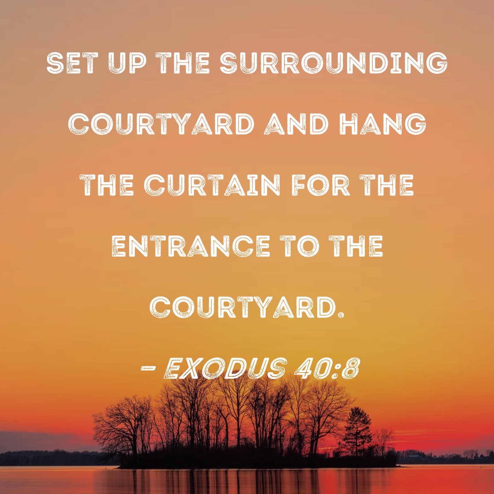 Exodus 40:8 Set up the surrounding courtyard and hang the curtain for the entrance to the courtyard.
