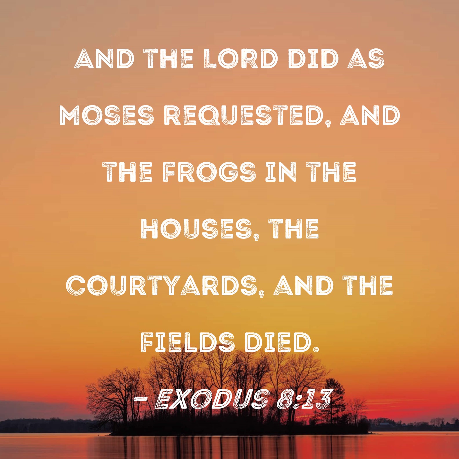 Exodus 8:13 And the LORD did as Moses requested, and the frogs in the houses, the courtyards, and the fields died.