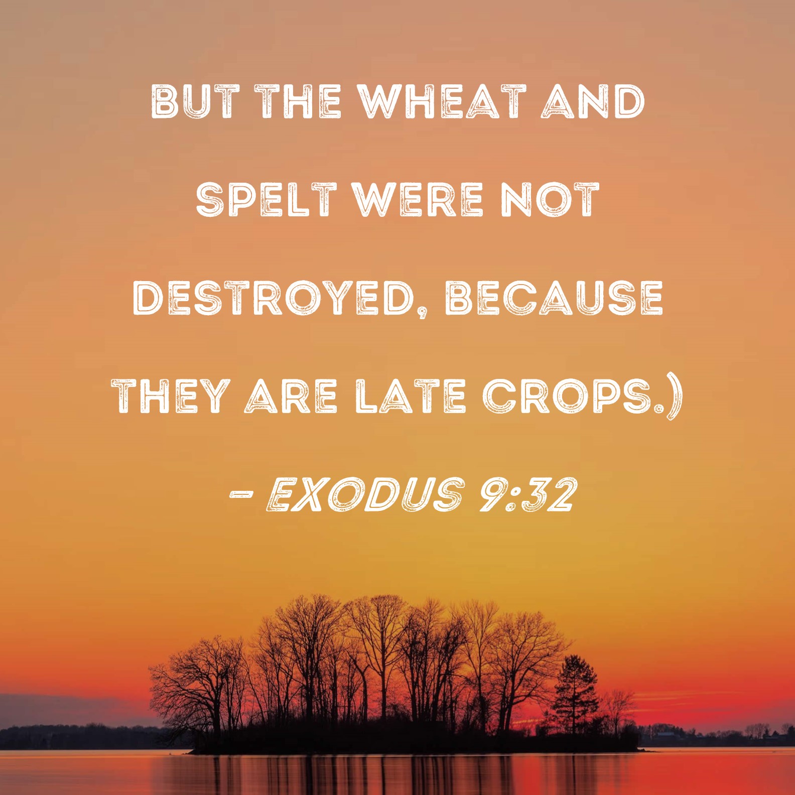 Exodus 9:32 but the wheat and spelt were not destroyed, because they are late crops.)